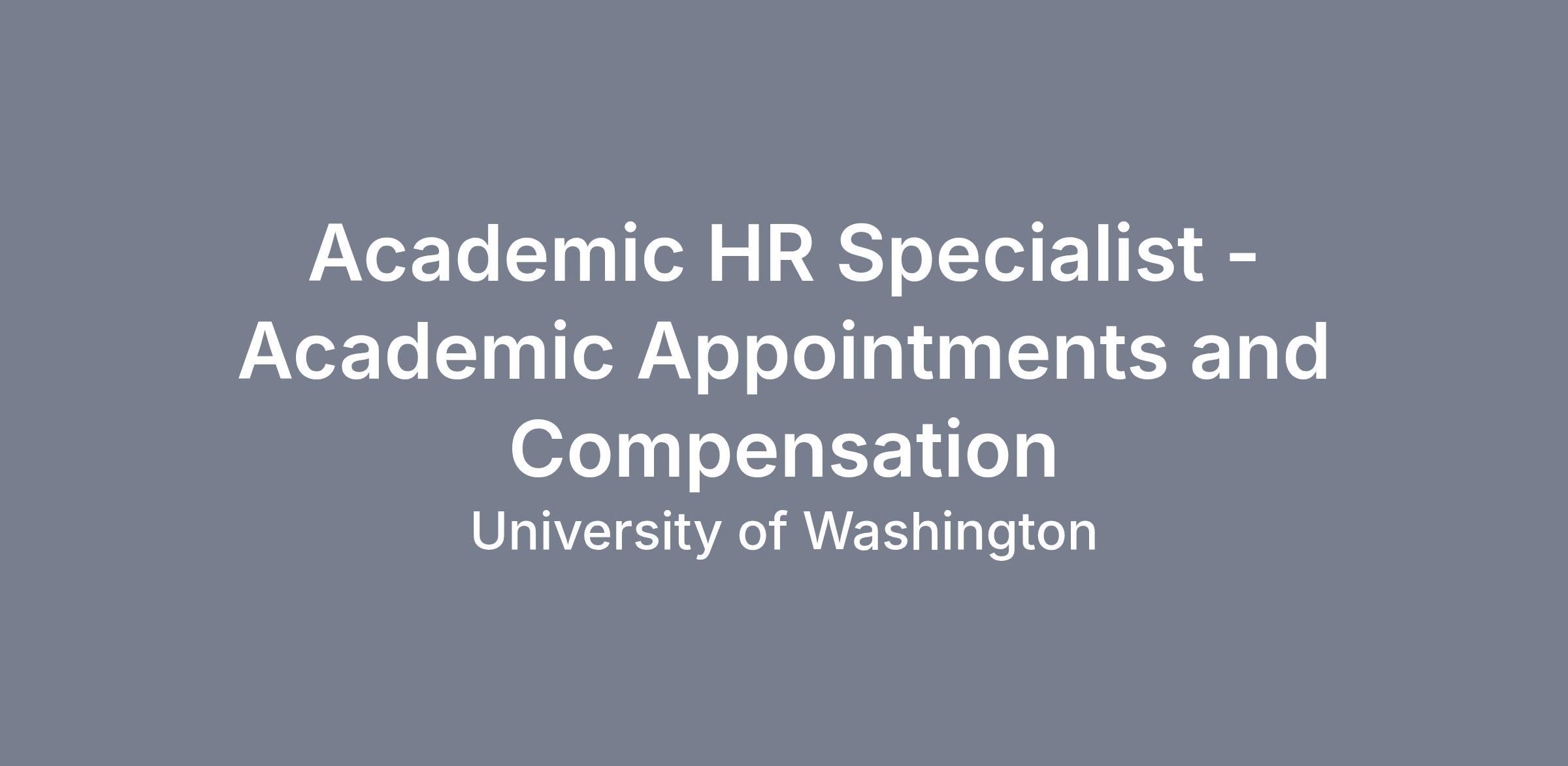 This position impacts the University of Washington’s standing as an academic center of excellence. Decisions made in this role have broad impact on compliance, faculty experience, and departmental operations across the School of Medicine. The position requires discretion, diplomacy, and independent judgment to balance institutional requirements with faculty needs. This role requires accuracy, efficiency, flexibility and a desire to serve multiple key personnel, while working within UW regulations. The AHR Specialist must manage sensitive and confidential information with discretion and have excellent communication, problem-solving, project management and relationship management skills.
