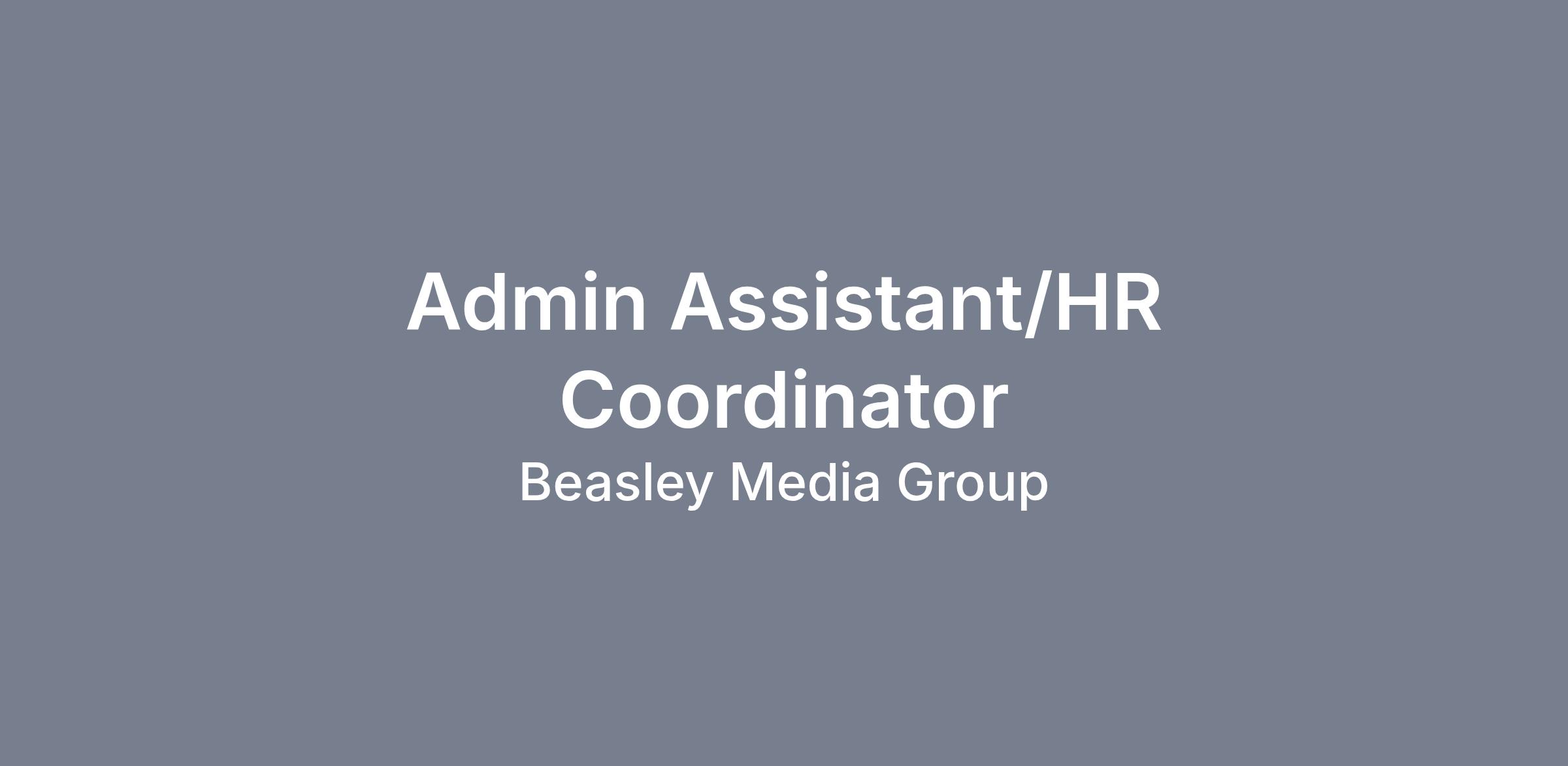 Position Overview Beasley Media Group is seeking a detail-oriented Admin Assistant/HR Coordinator to support payroll administration, FCC compliance, financial operations, and various administrative functions for our Detroit market.