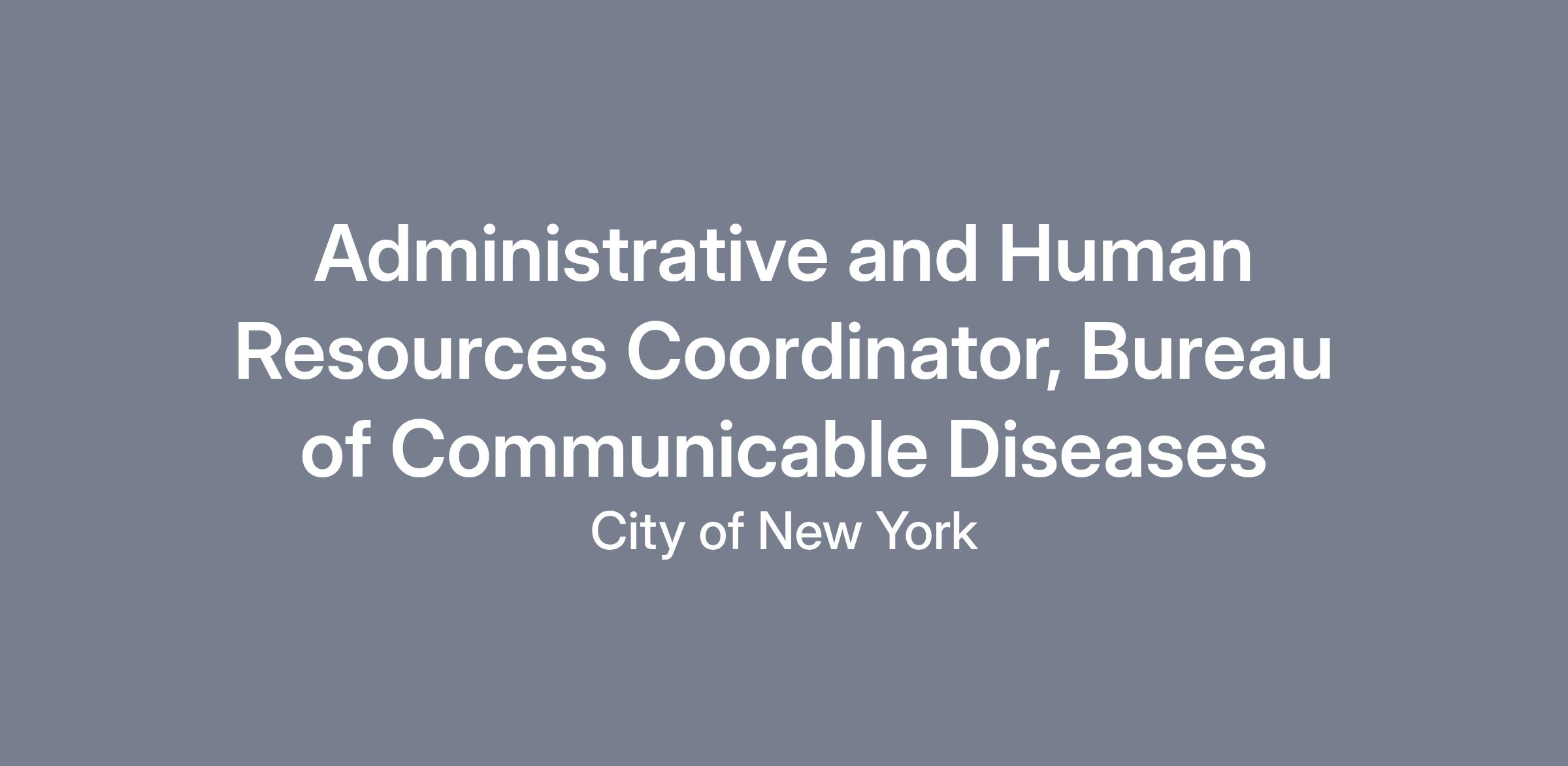 Reporting to the BCD's Human Resources Team Lead, the Administrative and Human Resources Coordinator will assist with all human resources and administrative tasks for BCD's 120 staff. You will engage with internal agency and external community partners by managing incoming telephone inquiries from healthcare providers and the general public. You will collaborate with the Bureau's Community Outreach and Health Education Team to identify or develop educational materials or activities to address common inquiries received by the Bureau. You will also perform administrative/human resources dissemination, overseeing training compliance, and updating BCD's organizational charts.