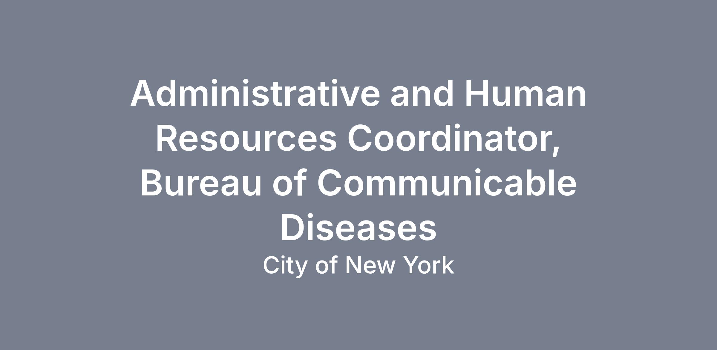 Reporting to the BCD's Human Resources Team Lead, the Administrative and Human Resources Coordinator will assist with all human resources and administrative tasks for BCD's 120 staff. You will engage with internal agency and external community partners by managing incoming telephone inquiries from healthcare providers and the general public. You will collaborate with the Bureau's Community Outreach and Health Education Team to identify or develop educational materials or activities to address common inquiries received by the Bureau. You will also perform administrative/human resources dissemination, overseeing training compliance, and updating BCD's organizational charts.
