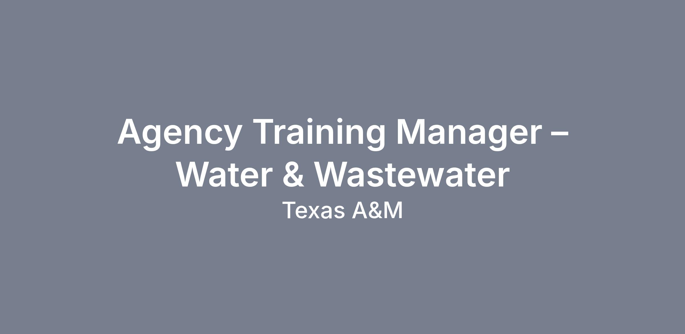 Agency Training Manager – Water & Wastewater