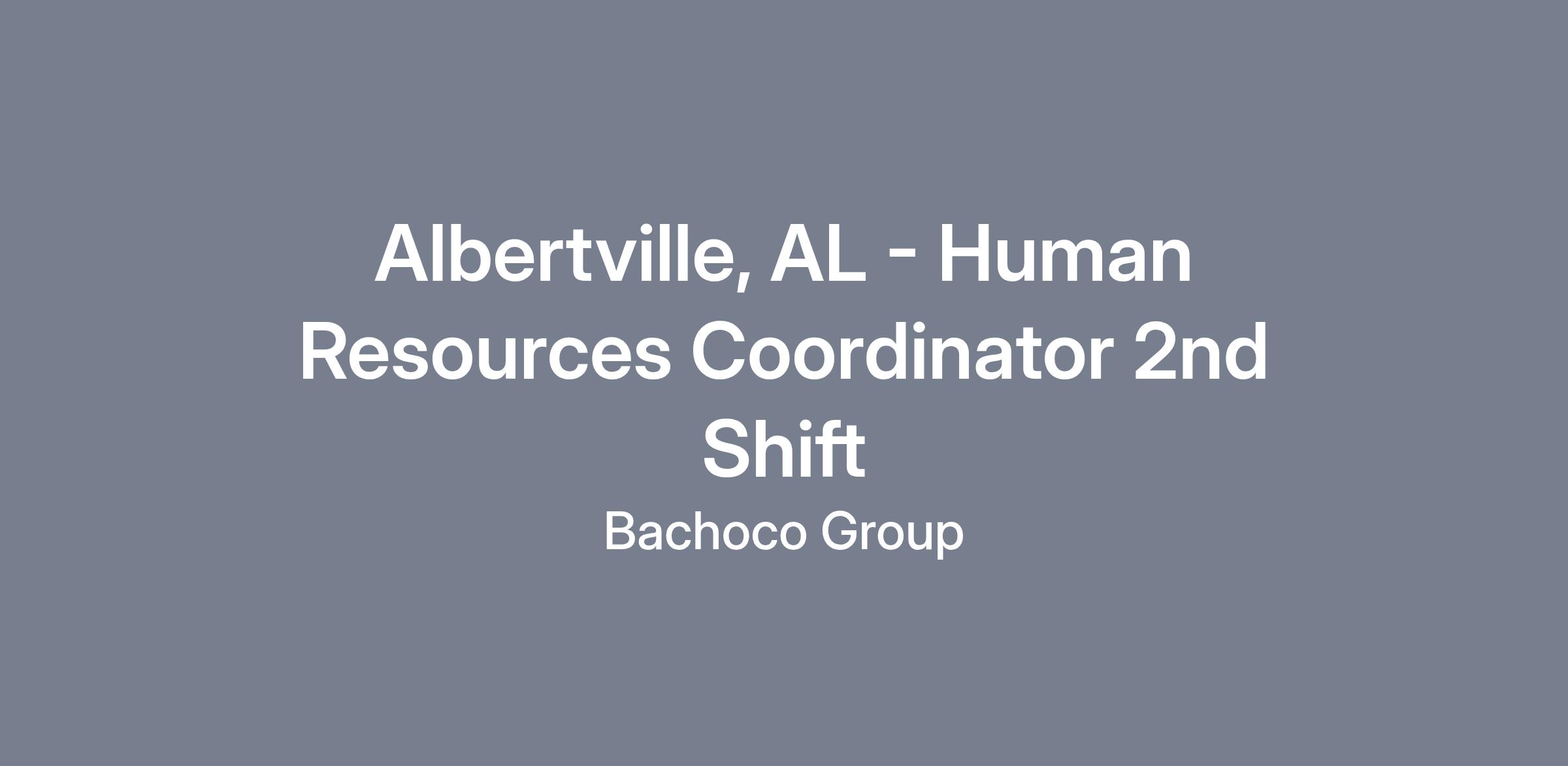 Bachoco USA is seeking a Human Resources Coordinator for our Albertville, AL facility. This position reports to the Human Resources Supervisor.