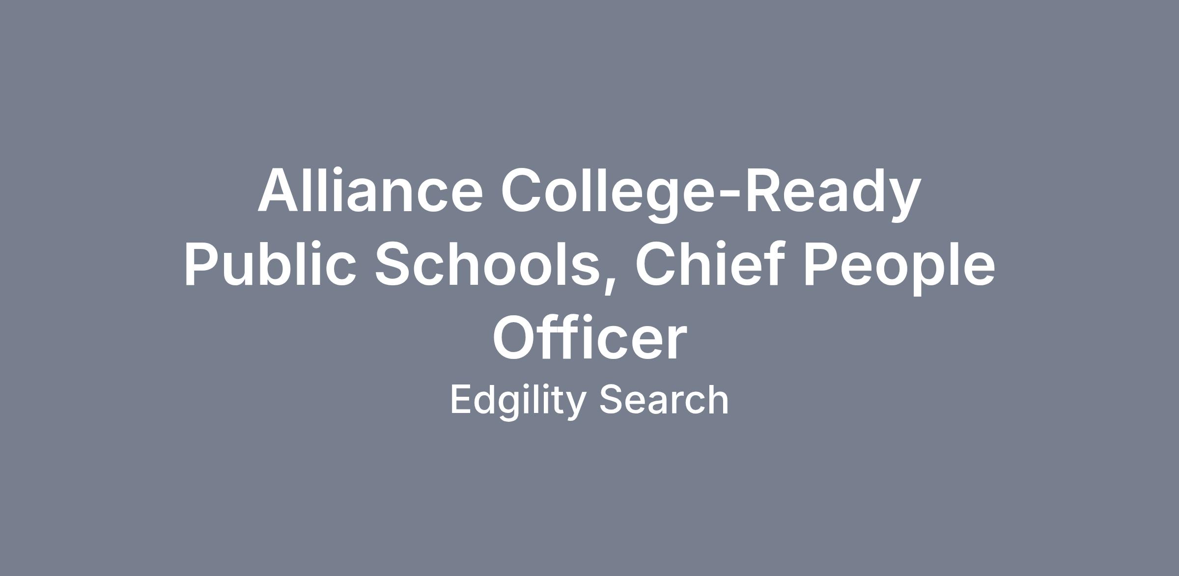 Alliance College-Ready Public Schools seeks a dynamic and strategic leader to serve as its Chief People Officer (CPO). Reporting to the Chief Executive Officer, the Chief People Officer will set the vision and direction for attracting, engaging, rewarding, developing, and retaining Alliance’s 1,400+ person team. The CPO is directly responsible for the strategic and tactical oversight of all aspects of talent work at Alliance, including human resources, staffing, employee relations and engagement, performance management, compensation, and other talent-related strategic initiatives. The Chief People Officer will oversee and coordinate the organization’s people systems and strategy, including leadership of the talent function across strategic initiatives, talent acquisition, human resources operations, employee relations and engagement, and performance management.who in turn collectively oversee a team of over 25 staff members. This critical role will also serve as a member of Alliance’s Senior Leadership Team (Cabinet) and be a strategic partner to other home office teams as well as instructional leaders across the network.