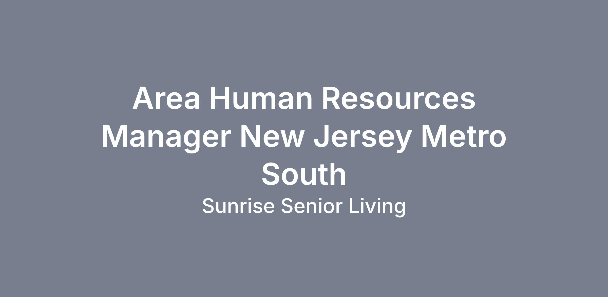 Area Human Resources Manager New Jersey Metro South