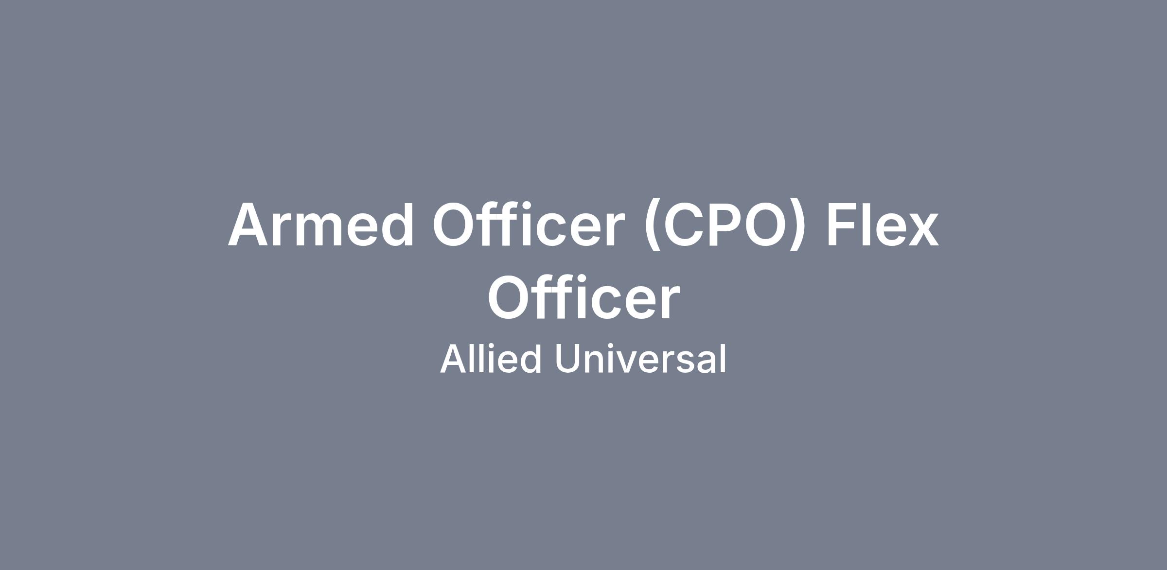 Allied Universal® is hiring a Custom Protection Officer (CPO) Flex Officer. The Custom Protection Officer Flex Officer will conduct armed and/or unarmed foot and/or vehicle patrol (interior and/or exterior). Additional duties include control access and egress; monitor CCTV and alarm systems; compose reports; deter criminal activity and misconduct. The Custom Protection Flex Officer will work at various assignments and may be called upon to work irregular shifts at times with little to no advance notice.