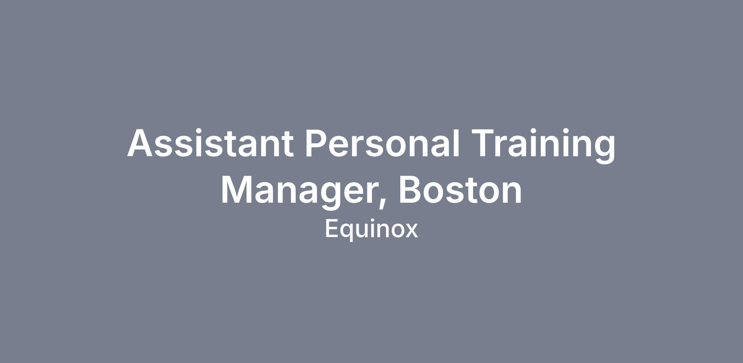 The Assistant Personal Training Manager is a leader of operational excellence at the club and upholds the quality of the Equinox experience inclusive of education, programming, and coach development for the PT Department, reporting to the Personal Training Manager. Assistant Personal Training Managers should be goal-oriented, results driven, eager to interact with members, and excited to develop and manage a team of high performing talent while helping to drive the business.