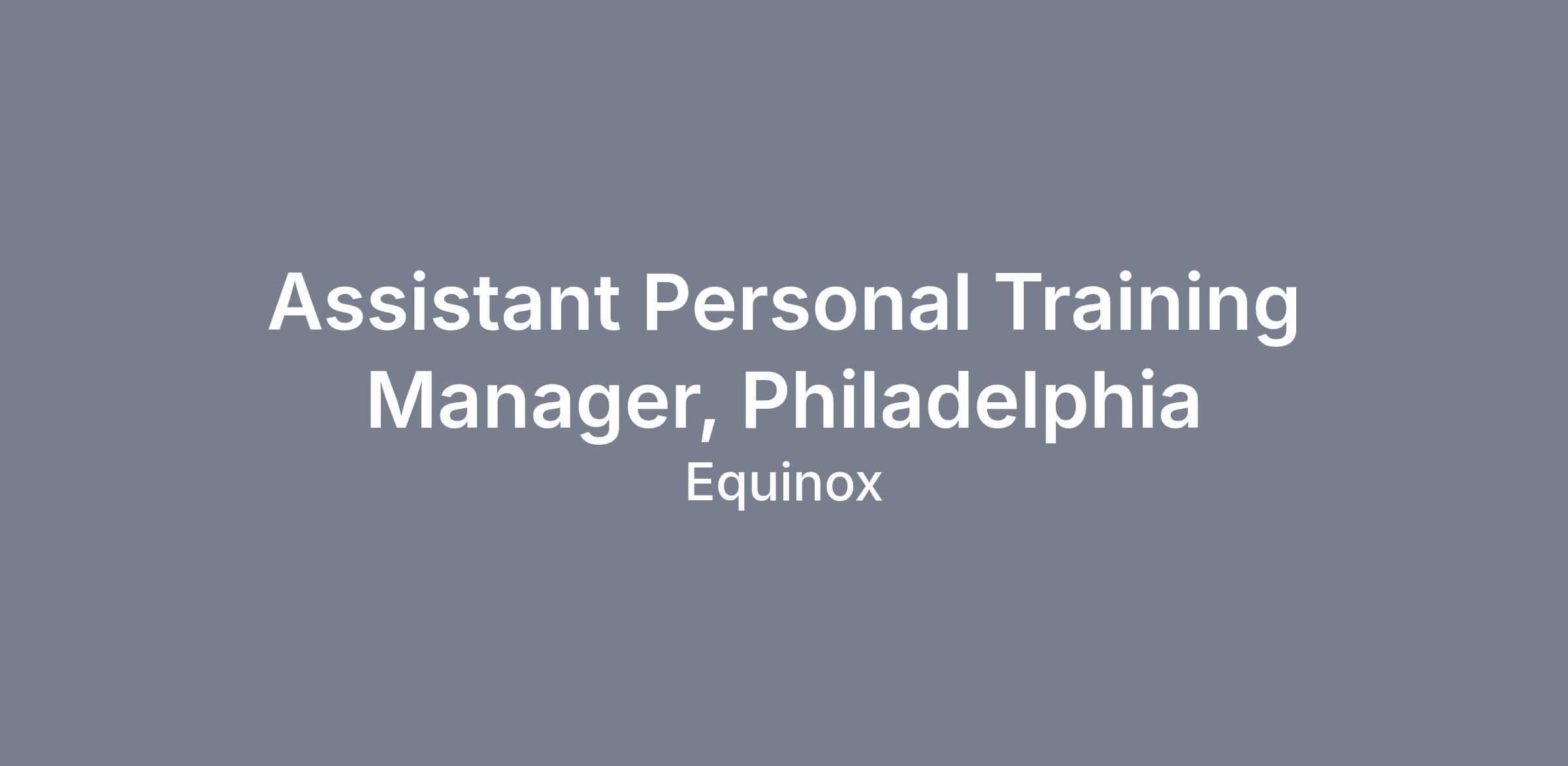 The Assistant Personal Training Manager is a leader of operational excellence at the club and upholds the quality of the Equinox experience inclusive of education, programming, and coach development for the PT Department, reporting to the Personal Training Manager. Assistant Personal Training Managers should be goal-oriented, results driven, eager to interact with members, and excited to develop and manage a team of high performing talent while helping to drive the business.