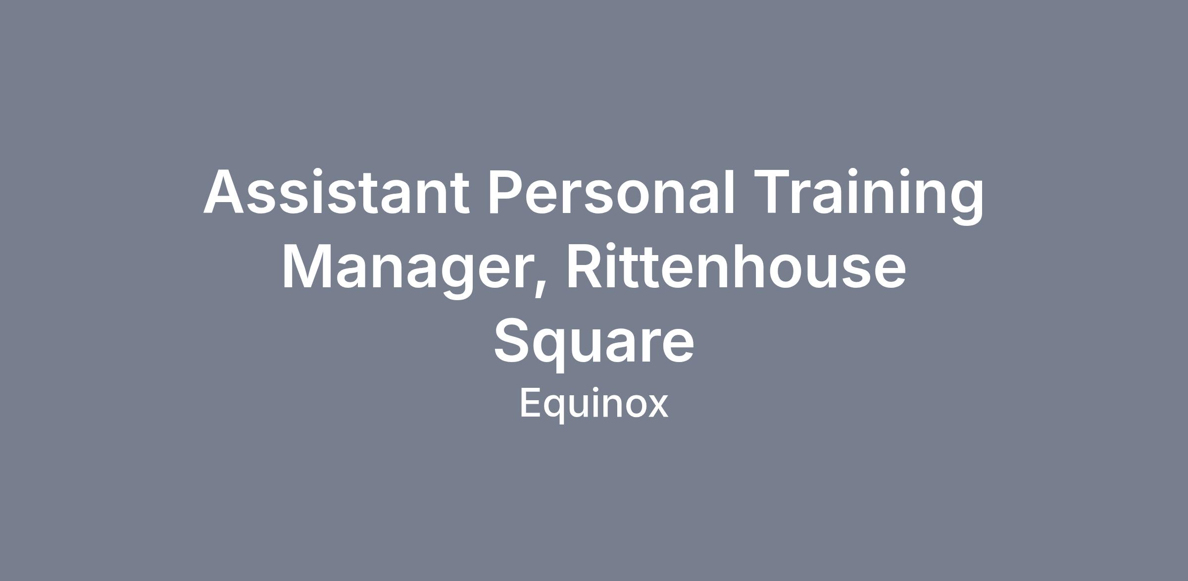 The Assistant Personal Training Manager is a leader of operational excellence at the club and upholds the quality of the Equinox experience inclusive of education, programming, and coach development for the PT Department, reporting to the Personal Training Manager. Assistant Personal Training Managers should be goal-oriented, results driven, eager to interact with members, and excited to develop and manage a team of high performing talent while helping to drive the business.
