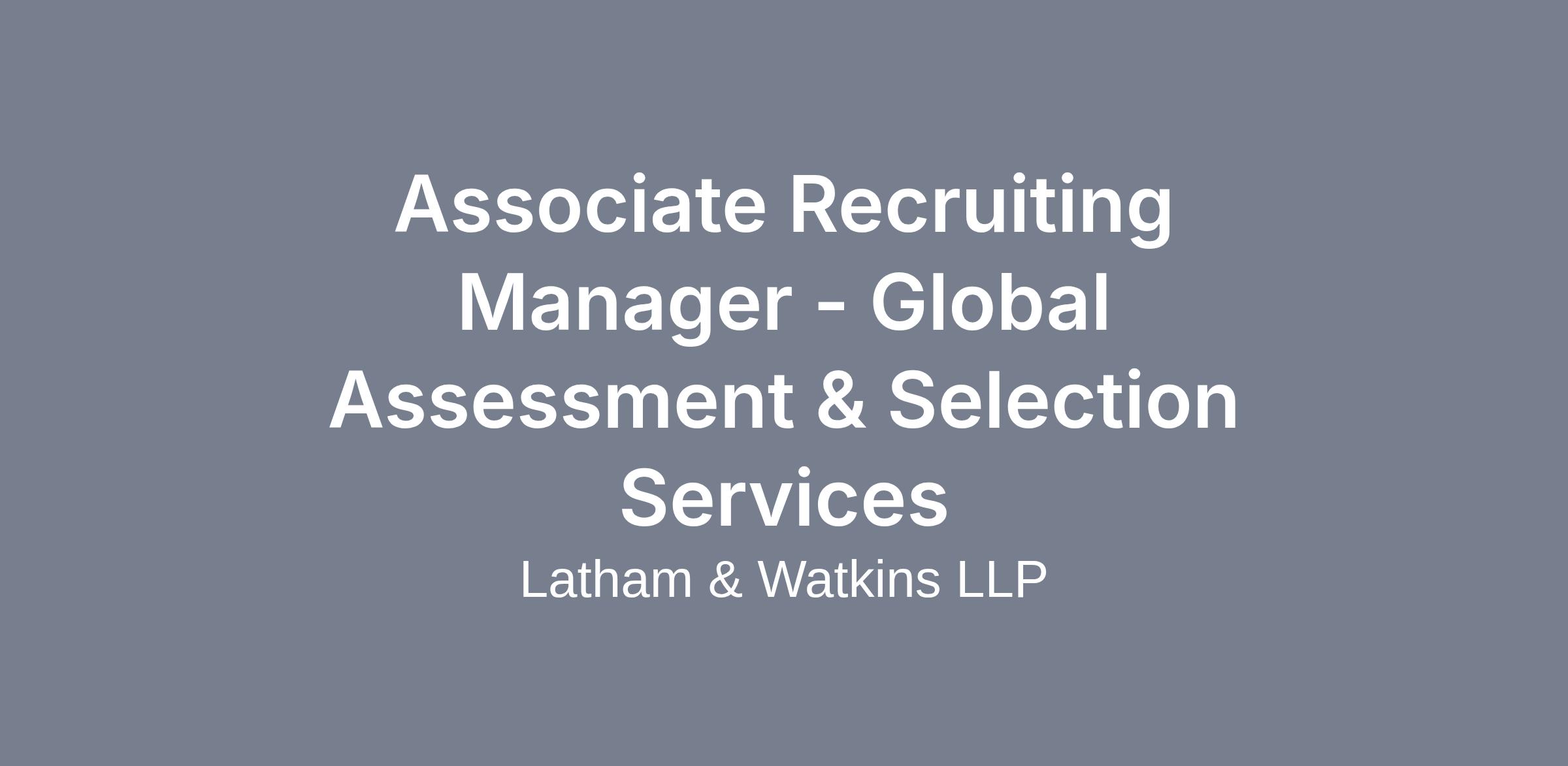 The Associate Recruiting Manager – Global Assessment & Selection Services is an integral part of Latham’s Associate Recruiting team. This role will be responsible for recruiting and hiring top talent for all associate‑level positions at Latham & Watkins, while leading the global strategy for associate assessment and selection, including the design, evaluation, and ongoing evolution of assessment frameworks and methodologies across both entry‑level and lateral hiring. This role will be located in either our New York or Washington D.C. office. Please note that this role may be eligible for a flexible working schedule that allows for a hybrid and in-office presence.