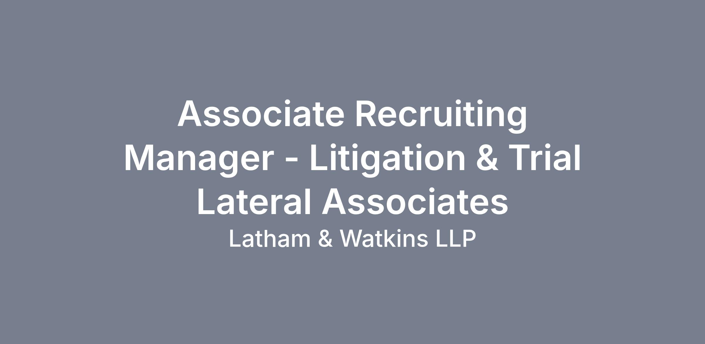 The Associate Recruiting Manager – Litigation & Trial Lateral Associates is an integral part of Latham’s Associate Recruiting team. This role will be responsible for recruiting and hiring of top talent for all associate-level positions at Latham & Watkins, while providing market intelligence and strategic guidance to Practice Group Chairs (PGCs) and collaborating with department, office, and practice leaders firmwide to develop and implement tailored strategies for lateral associate recruitment, positioning Latham at the forefront of strategic growth in the legal market. This role will be located in our Washington, D.C. office. Please note that this role may be eligible for a flexible working schedule that allows for a hybrid and in-office presence.