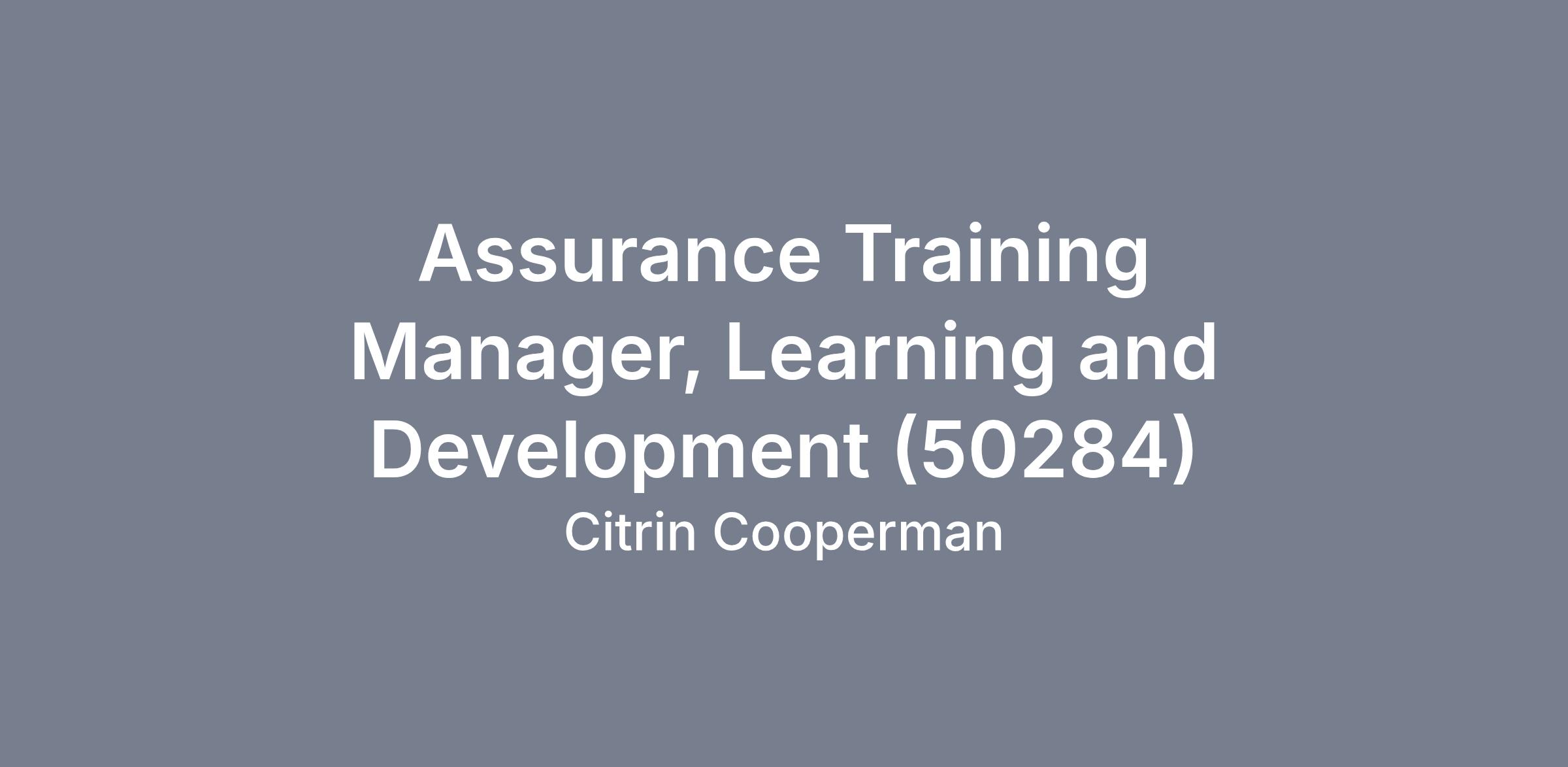 We are seeking an Assurance Training Manager, Learning and Development, to join the Learning and Development (L&D) team within the Human Resources (HR) department.