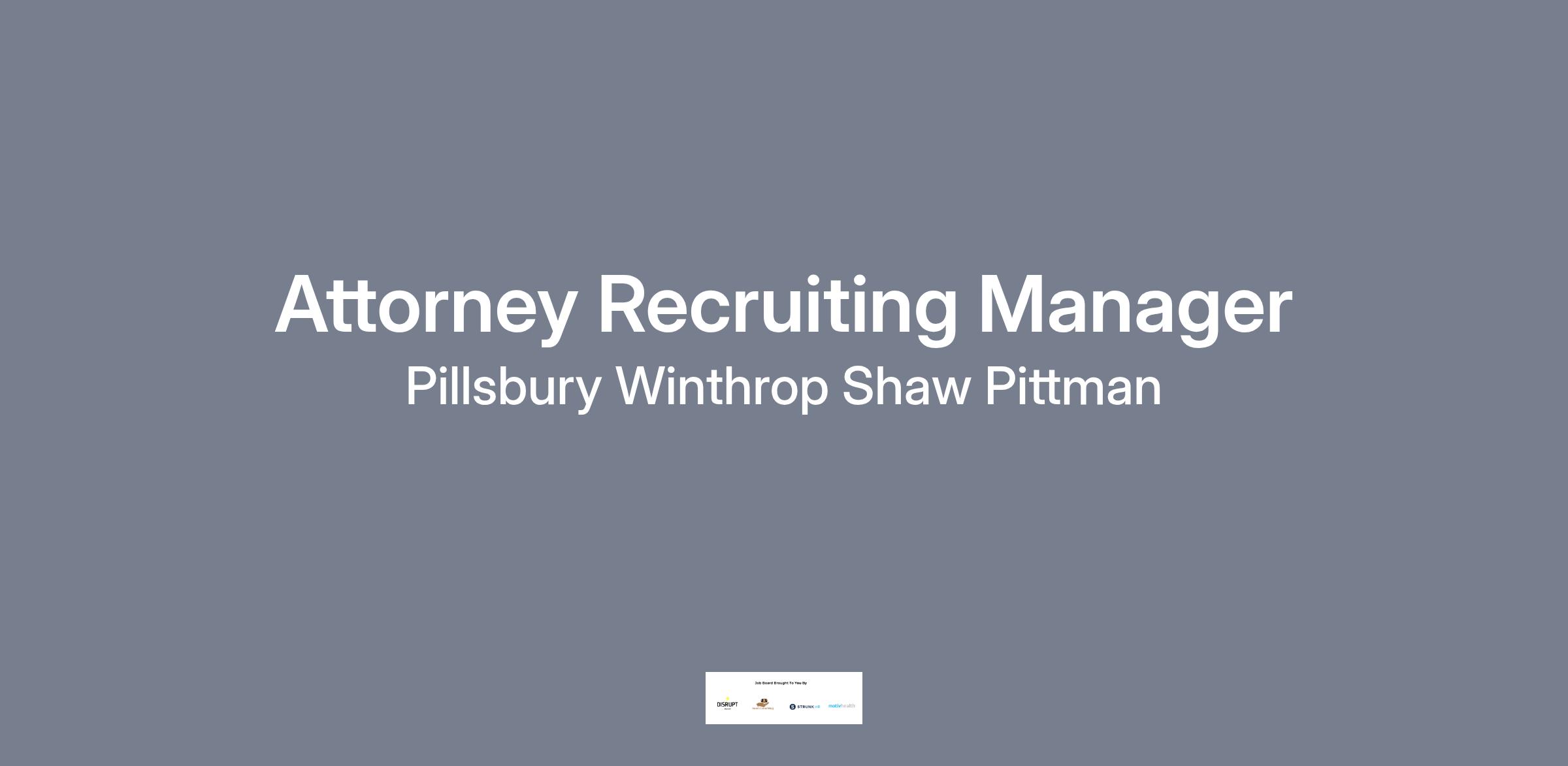 Pillsbury Winthrop Shaw Pittman LLP is actively seeking a New York Attorney Recruiting Manager. This position will oversee all lateral associate recruiting and manage law school recruiting and summer associate programs for our New York and Miami offices. In conjunction with the Senior Director of Attorney Recruiting, Director of Firmwide Associate Recruiting, Practice Section Leaders, and Office Managing Partner, he or she will develop and manage a proactive recruiting strategy to recruit top-tier talent. This position will report directly to the Director of Firmwide Associate Recruiting and collaborate with the firmwide recruiting team.