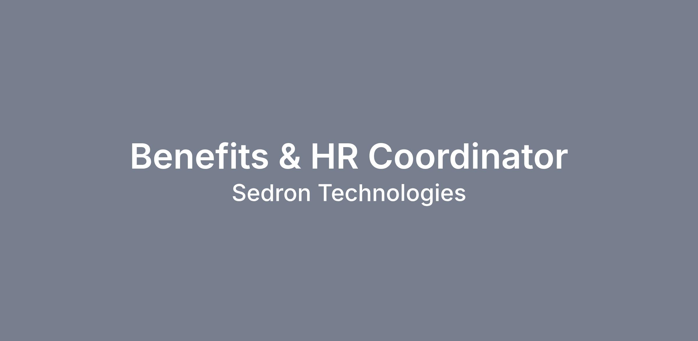 The Benefits & HR Coordinator plays a vital supporting role within Sedron Technologies’ Human Resources function, helping ensure employees have access to the information and administrative support they need to understand and utilize their benefits.