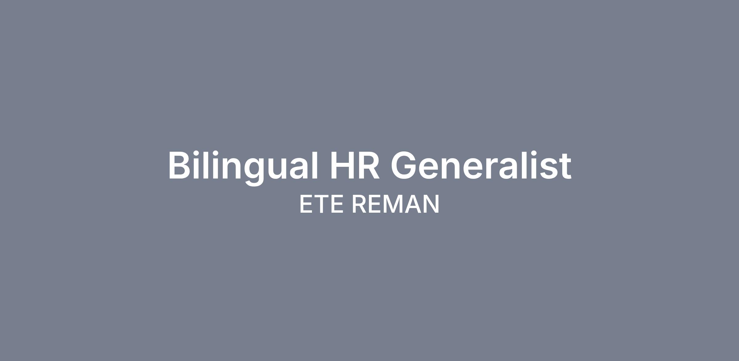 Job Overview: The Bilingual Human Resource Generalist role serves as a strategic HR Generalist with a strong emphasis on employee relations, employee engagement, survey execution and action planning, and supporting retention initiatives. The ideal candidate will partner closely with leaders and employees across the organization to enhance employee experience, strengthen workplace culture, and support ETE’s mission and core values.