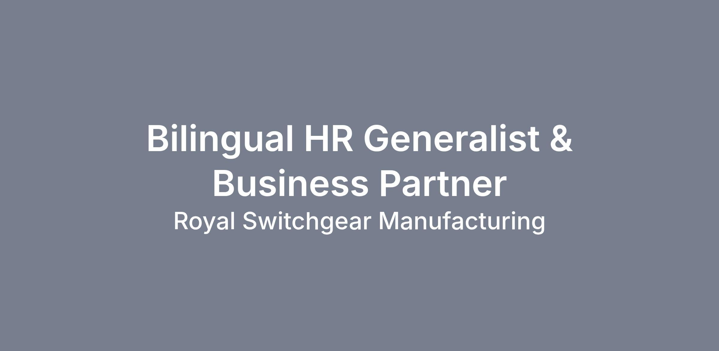 BILINGUAL HUMAN RESOURCES GENERALIST & BUSINESS PARTNER, ROYAL SWITCHGEAR MANUFACTURING COMPANY