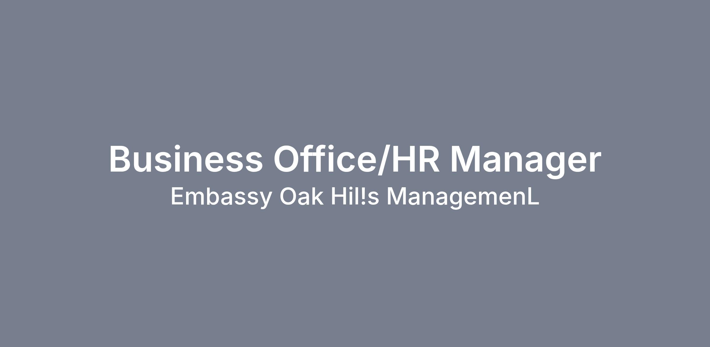 Balancing budgets, enhancing lives; Oak Hills is looking for a highly motivated, experienced Business Office/Human Resource Manager with exceptional organizational & communication skills the has the passion for working in long term care.