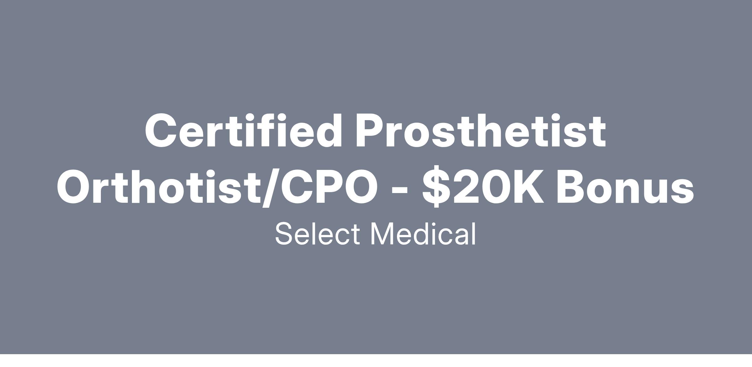 We are seeking a compassionate and driven ABC Certified full-time Certified Prosthetist Orthotist (CPO) to provide exceptional patient care experiences. Oversees all stages of design, fabrication, fitting, and maintenance of prosthetic devices related to patients’ needs as indicated by a physician. American Board Certified (ABC) certification in Prosthetics and Orthotics is required. Our highly trained and respected therapy team provides services that maximize functionality and promote the well-being of our patients. Our work environment offers a great opportunity to provide skilled patient care and grow within our Prosthetics and Orthotics division.