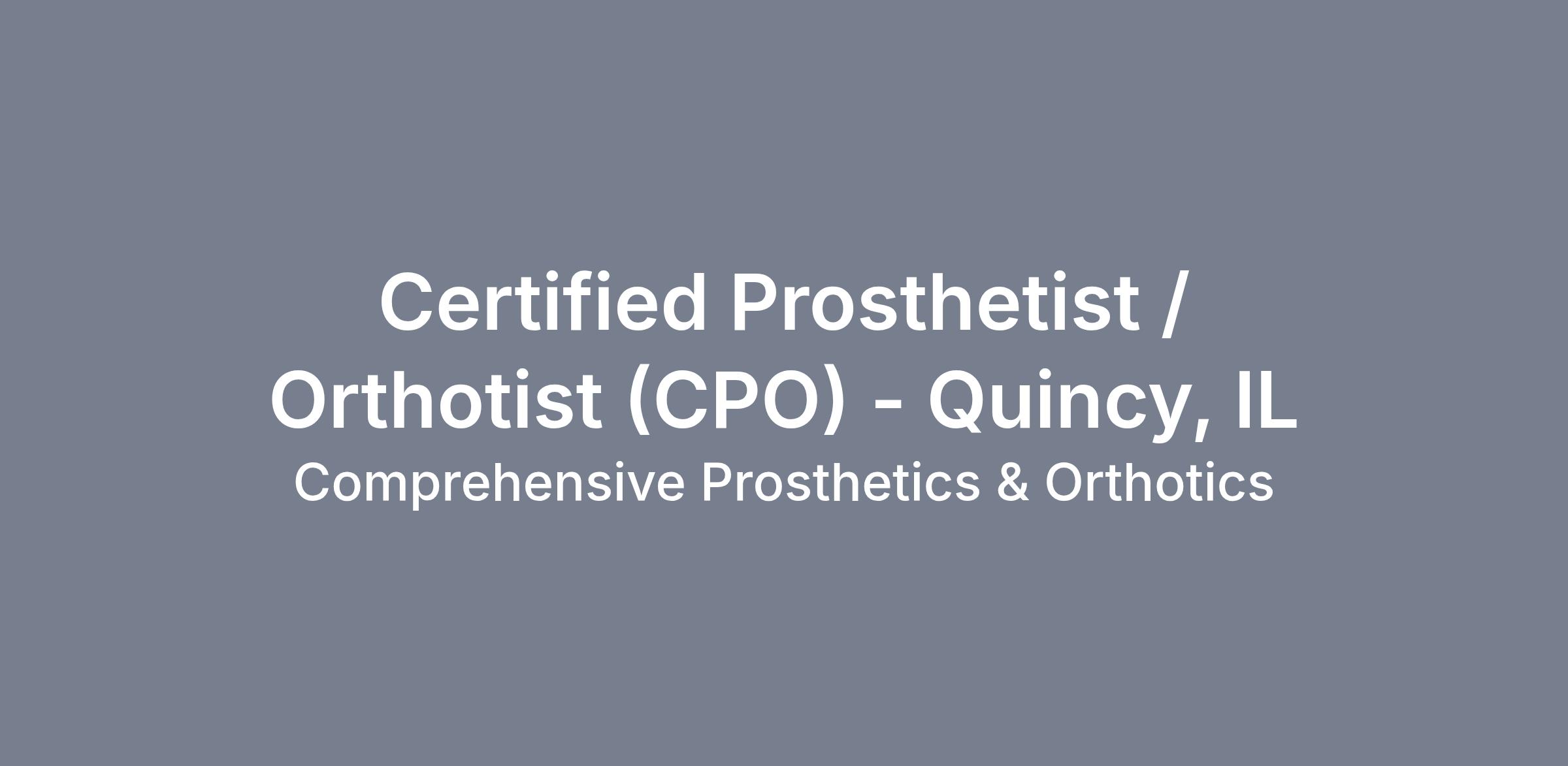- ABC Certification in Prosthetics and Orthotics (CPO) required.