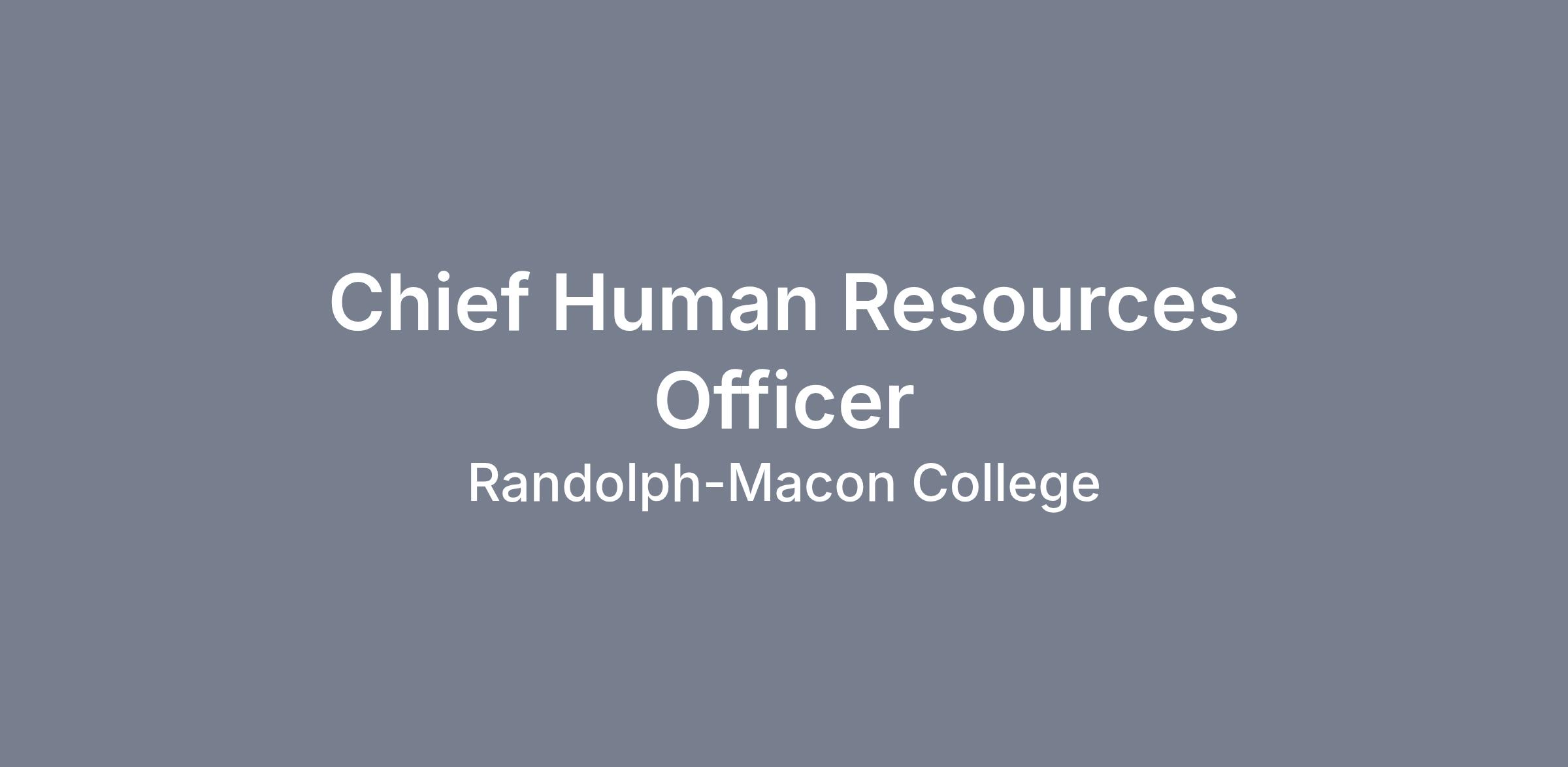 Randolph-Macon College is seeking a strategic, collaborative, and service-oriented Chief Human Resources Officer (CHRO) to lead the College’s people, culture, and workforce strategy in alignment with its mission, strategic plan, enrollment goals, and financial realities.