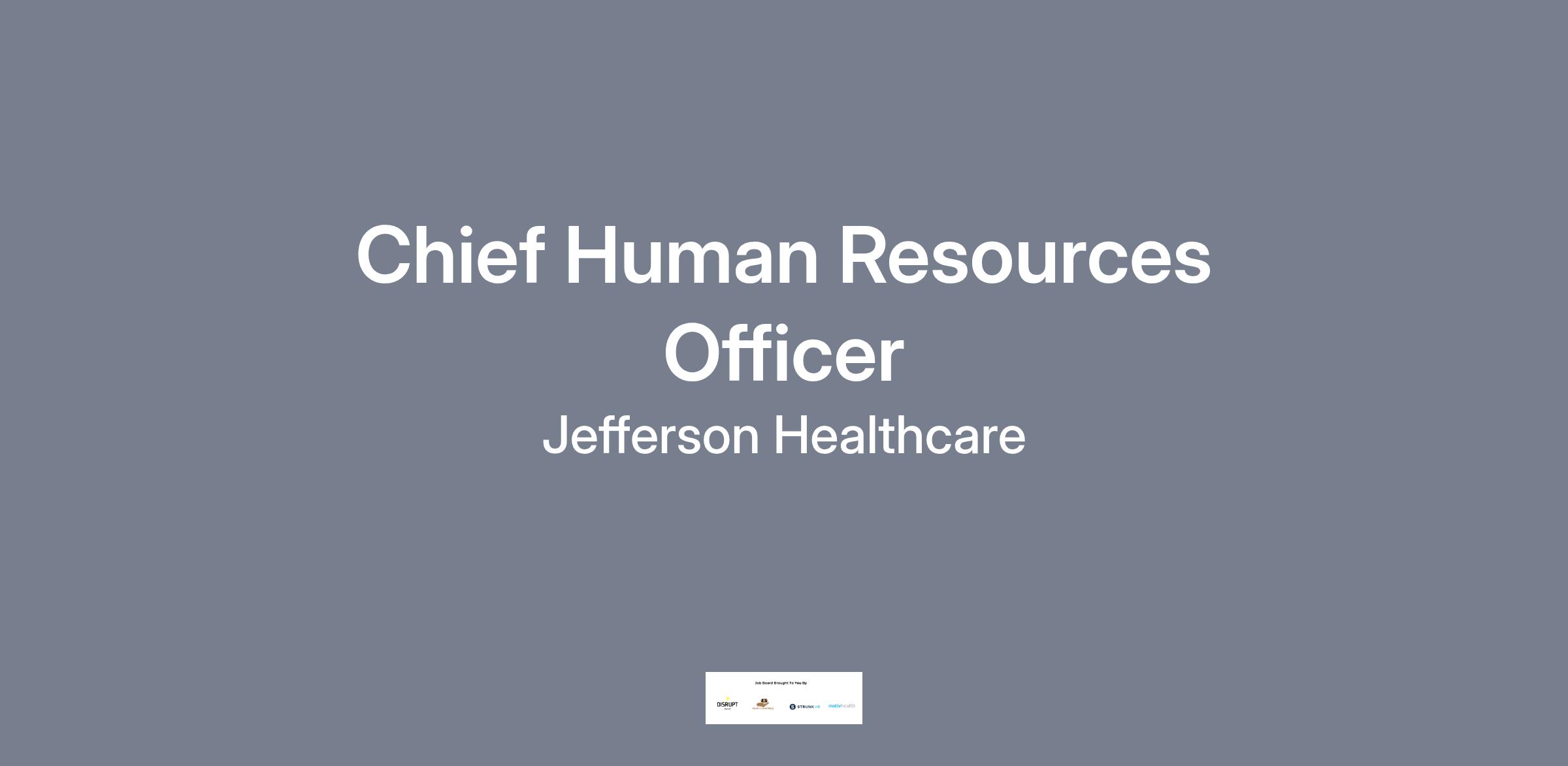 Jefferson Healthcare is seeking a dynamic, results-oriented, highly motivated Chief Human Resources Officer (CHRO) to join our executive team. This is a key leadership role for a strategic, innovative, emotionally intelligent HR professional with a demonstrated record of success.