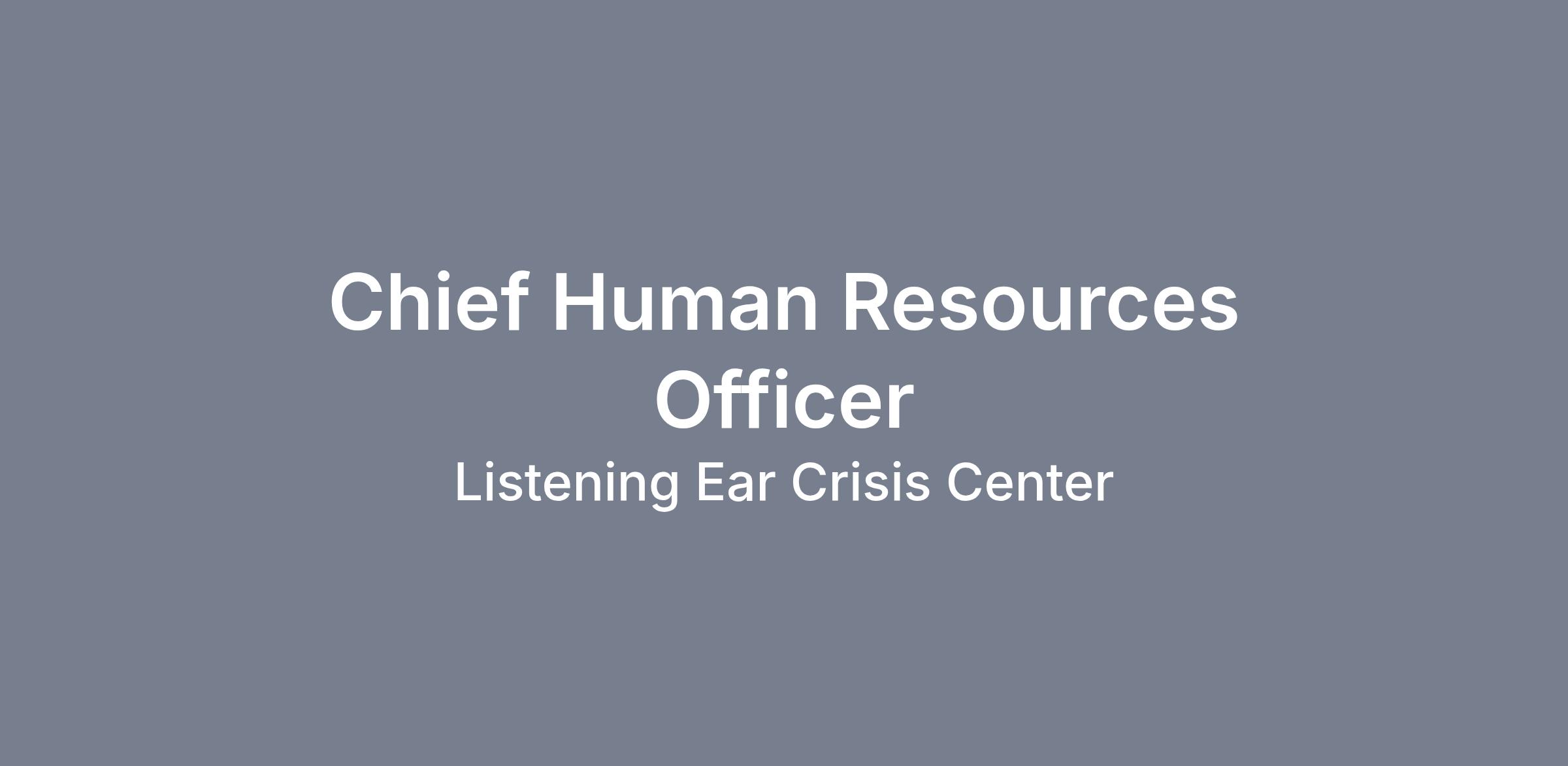 Listening Ear is seeking an experienced, strategic, and people‑centered Chief Human Resource Officer (CHRO) to serve as a key member of the executive leadership team. This is a full‑time, salaried position reporting directly to the Chief Operating Officer (COO), with regular collaboration and strategic planning responsibilities coordinated with and for the Chief Executive Officer (CEO).