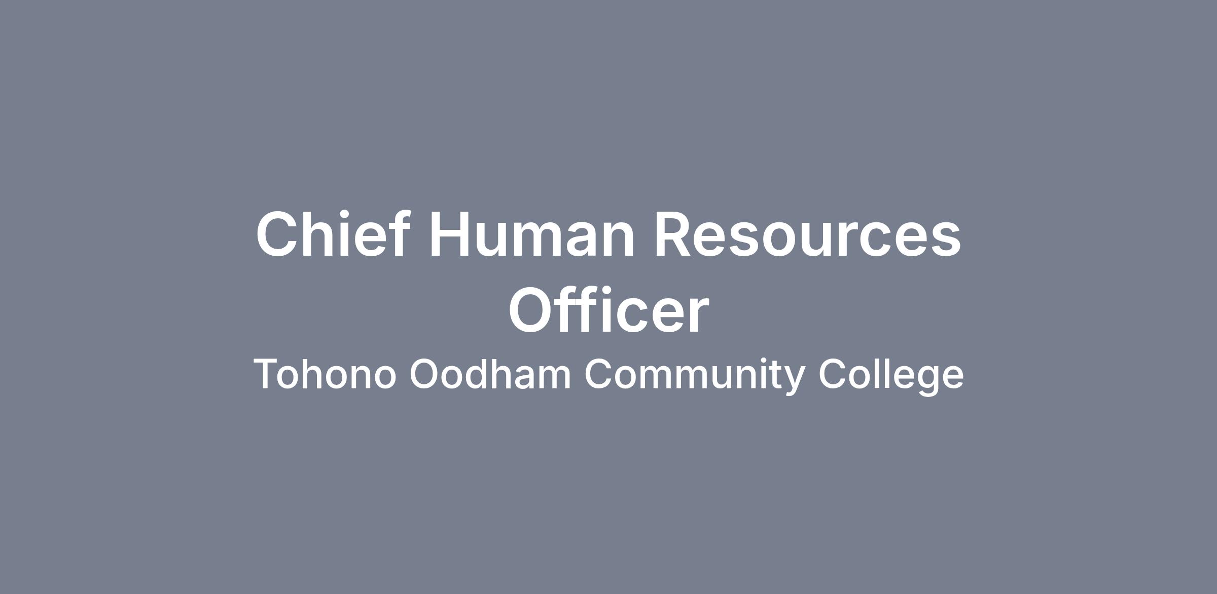 Tohono O’odham Community College (TOCC) is seeking a Chief Human Resources Officer (CHRO) to lead all human resource matters for two campuses and a satellite center. The CHRO is a trusted leader and advisor on all HR functions and reports directly to the President. This is a full-time, exempt position in the Office of the President.