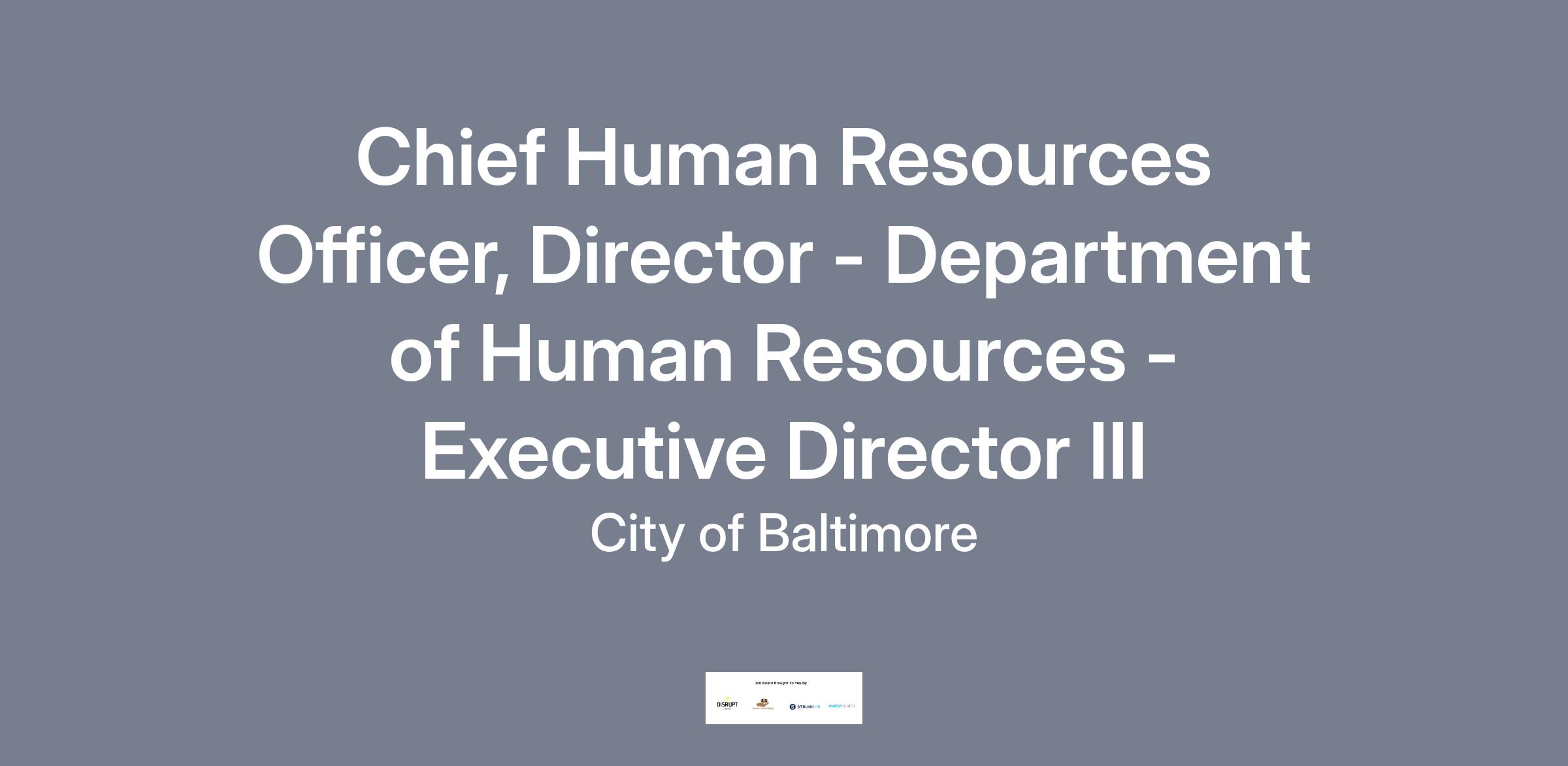 The City of Baltimore seeks a strong, forward-thinking, strategic leader to serve as its next Chief Human Capital Officer (CHCO) and Director of Human Resources. The Chief Human Capital Officer will lead the City’s Department of Human Resources and serves as the principal advisor to the Mayor and City leadership on human capital management. This position directly supervises the Deputy Director and an Executive Assistant.