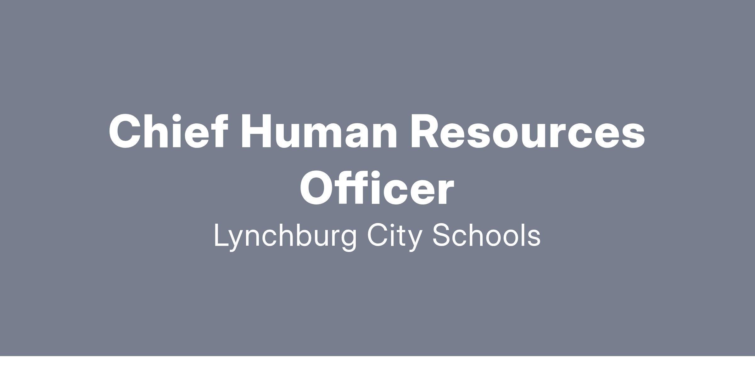 Lynchburg City Schools is seeking an experienced and innovative Chief of Human Resources to lead all aspects of the Human Resources department. The Chief of Human Resources Officer serves as a strategic advisor to the Superintendent and Executive Cabinet and is responsible for ensuring the development, implementation, and communication of personnel policies and practices that support the division’s mission and vision. The ideal candidate will be knowledgeable in school division policies, employment regulations, and human resource management best practices.