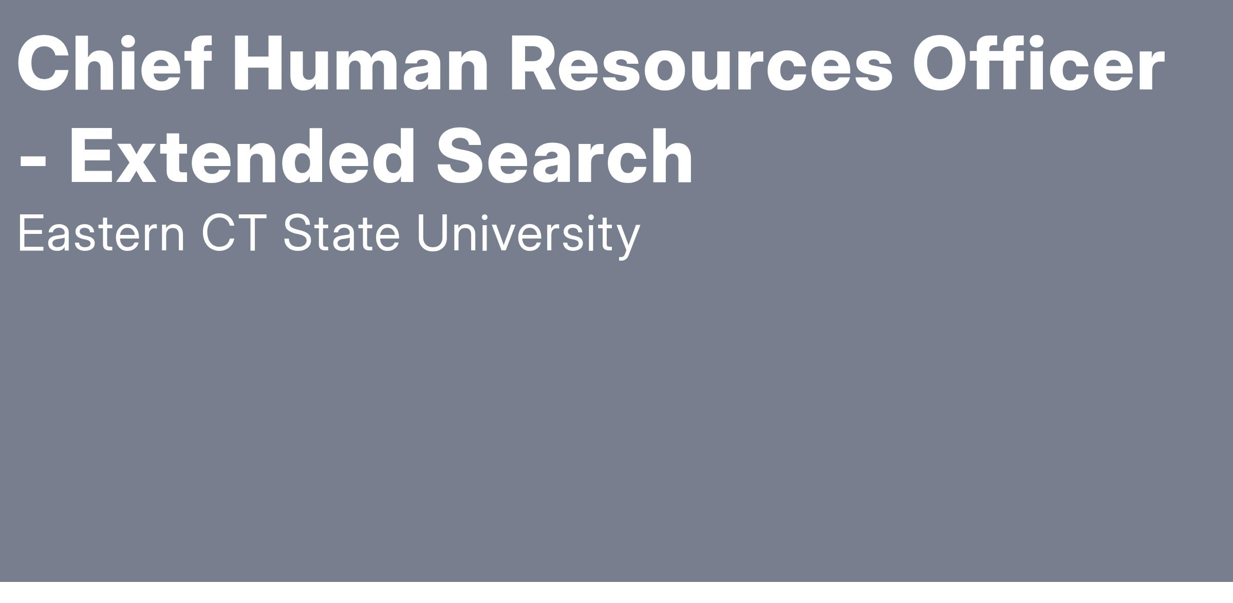 Position Overview: Eastern Connecticut State University (Eastern) seeks a dynamic, distinguished executive to serve as its next Chief Human Resources Officer (CHRO) to guide the university through transformation and change. This is a unique opportunity for a visionary leader to join a vibrant, learning-centered community dedicated to teaching and scholarship, while also deeply committed to fostering a culture of inclusion. This is a full-time, in-person appointment, with the possibility of partial remote work during the summer months.