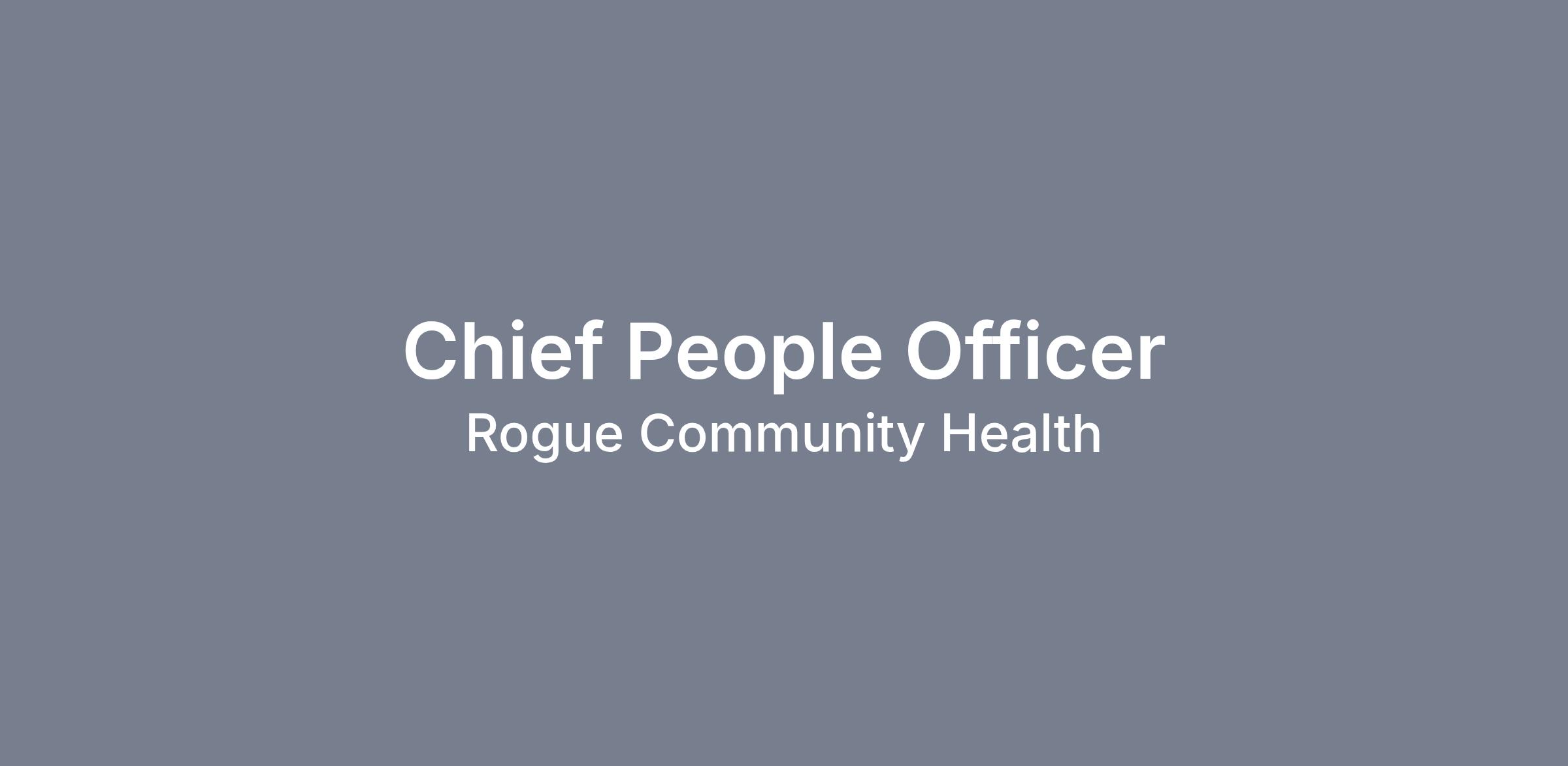 Rogue Community Health (RCH), a non-profit, Federally Qualified Health Center (FQHC) located in beautiful Jackson County, Oregon, is seeking a highly experienced and dynamic Chief People Officer (CPO) to join our organization. Our CPO will lead three Mission driven and highly skilled departments.