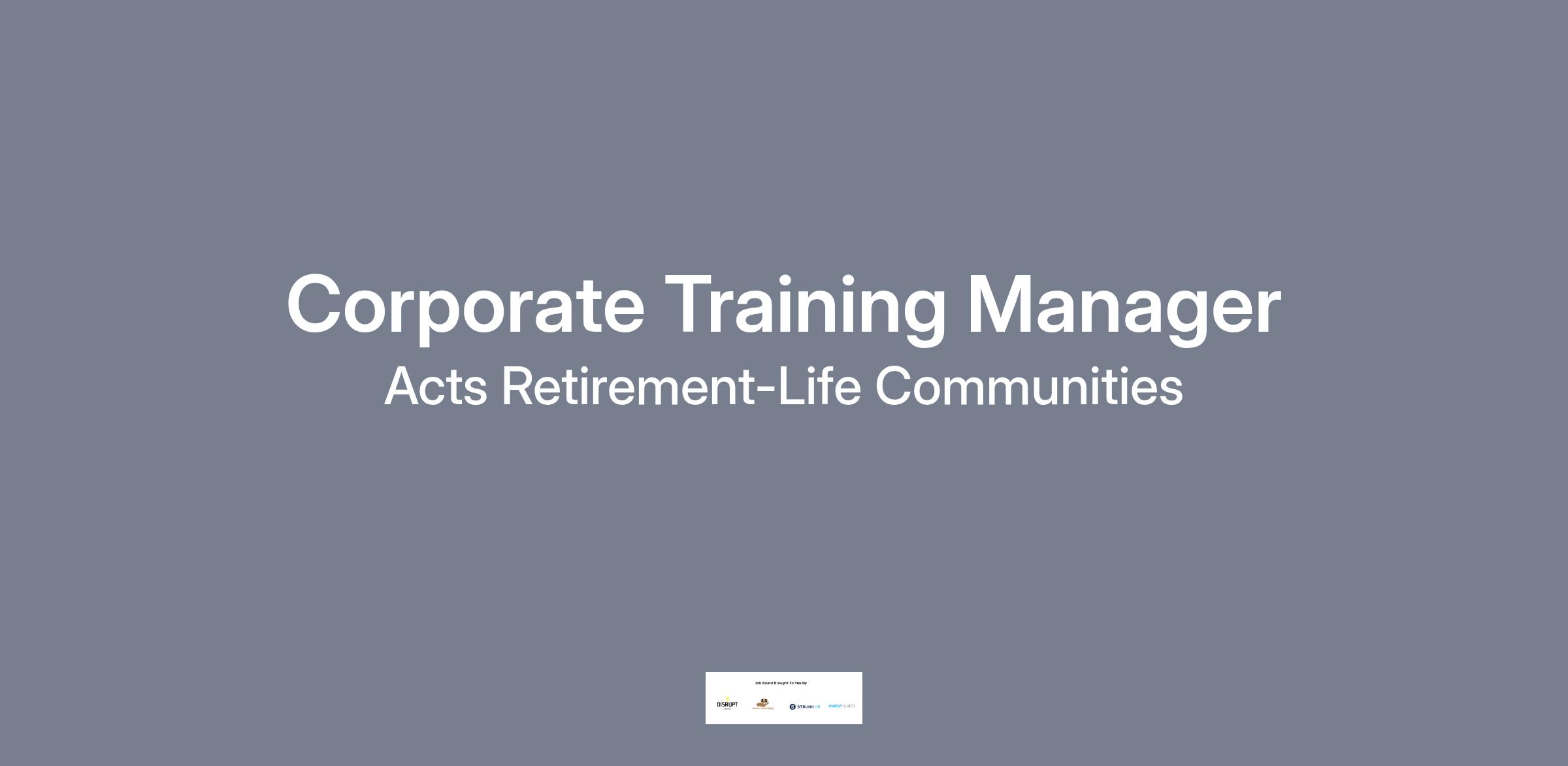 Acts Corporate University is currently seeking qualified candidates for the role of Corporate Training Manager.