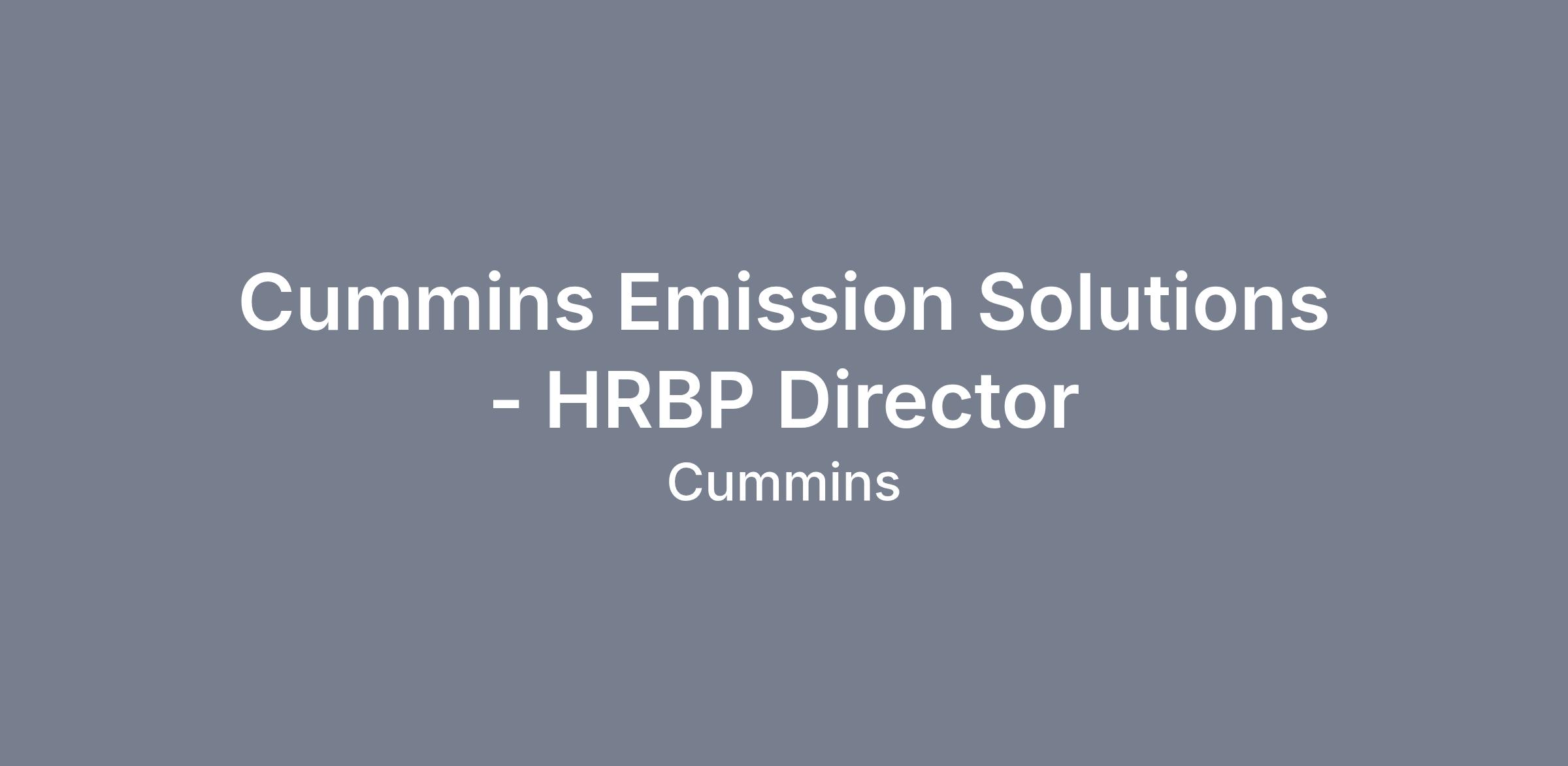 DescriptionWe are looking for a talented HR Business Partner (HRBP) Director for our Cummins Emission Solutions (CES) business. Must be based in Columbus or Indianapolis, IN, or one of the global CES locations.