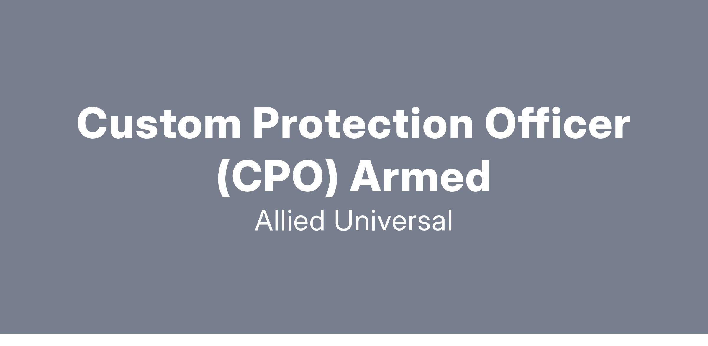 Allied Universal® is hiring a Custom Protection Officer (CPO) Flex Officer. The Custom Protection Officer Flex Officer will conduct armed and/or unarmed foot and/or vehicle patrol (interior and/or exterior). Additional duties include control access and egress; monitor CCTV and alarm systems; compose reports; deter criminal activity and misconduct. The Custom Protection Flex Officer will work at various assignments and may be called upon to work irregular shifts at times with little to no advance notice.