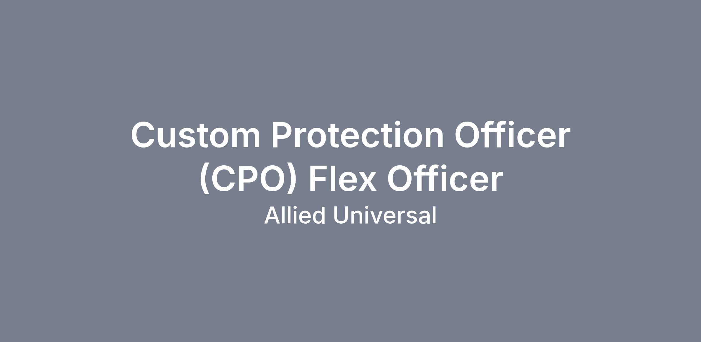 Allied Universal® is hiring a Custom Protection Officer (CPO) Flex Officer. The Custom Protection Officer Flex Officer will conduct armed and/or unarmed foot and/or vehicle patrol (interior and/or exterior). Additional duties include control access and egress; monitor CCTV and alarm systems; compose reports; deter criminal activity and misconduct. The Custom Protection Flex Officer will work at various assignments and may be called upon to work irregular shifts at times with little to no advance notice.