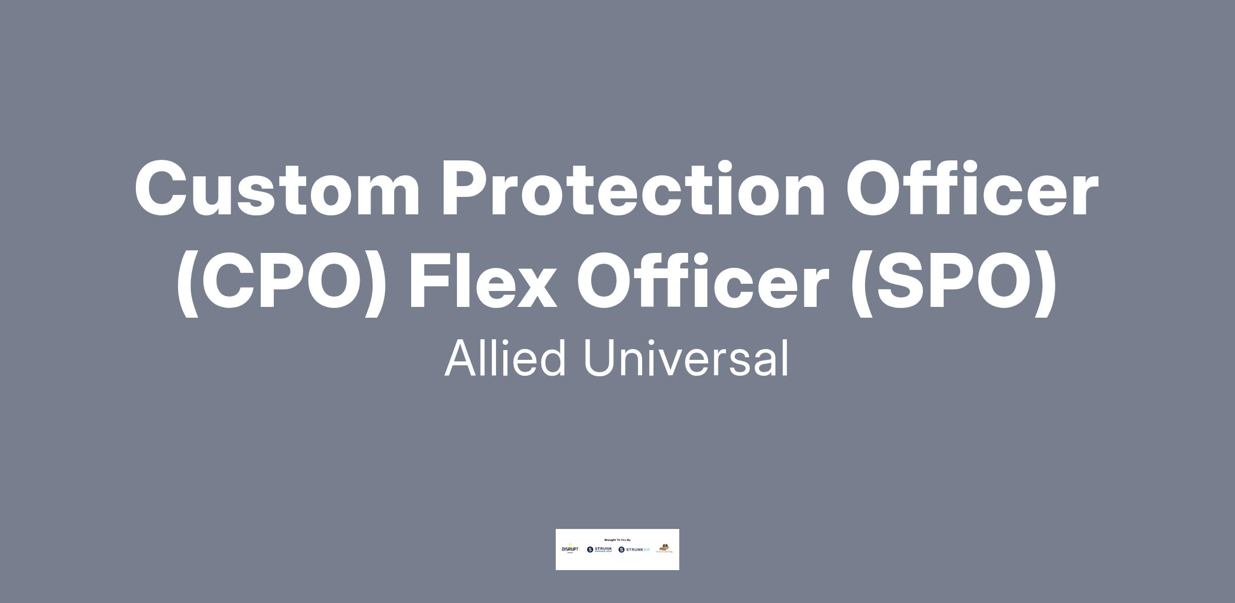 Allied Universal® is hiring a Custom Protection Officer (CPO) Flex Officer. The Custom Protection Officer Flex Officer will conduct armed and/or unarmed foot and/or vehicle patrol (interior and/or exterior). Additional duties include control access and egress; monitor CCTV and alarm systems; compose reports; deter criminal activity and misconduct. The Custom Protection Flex Officer will work at various assignments and may be called upon to work irregular shifts at times with little to no advance notice.