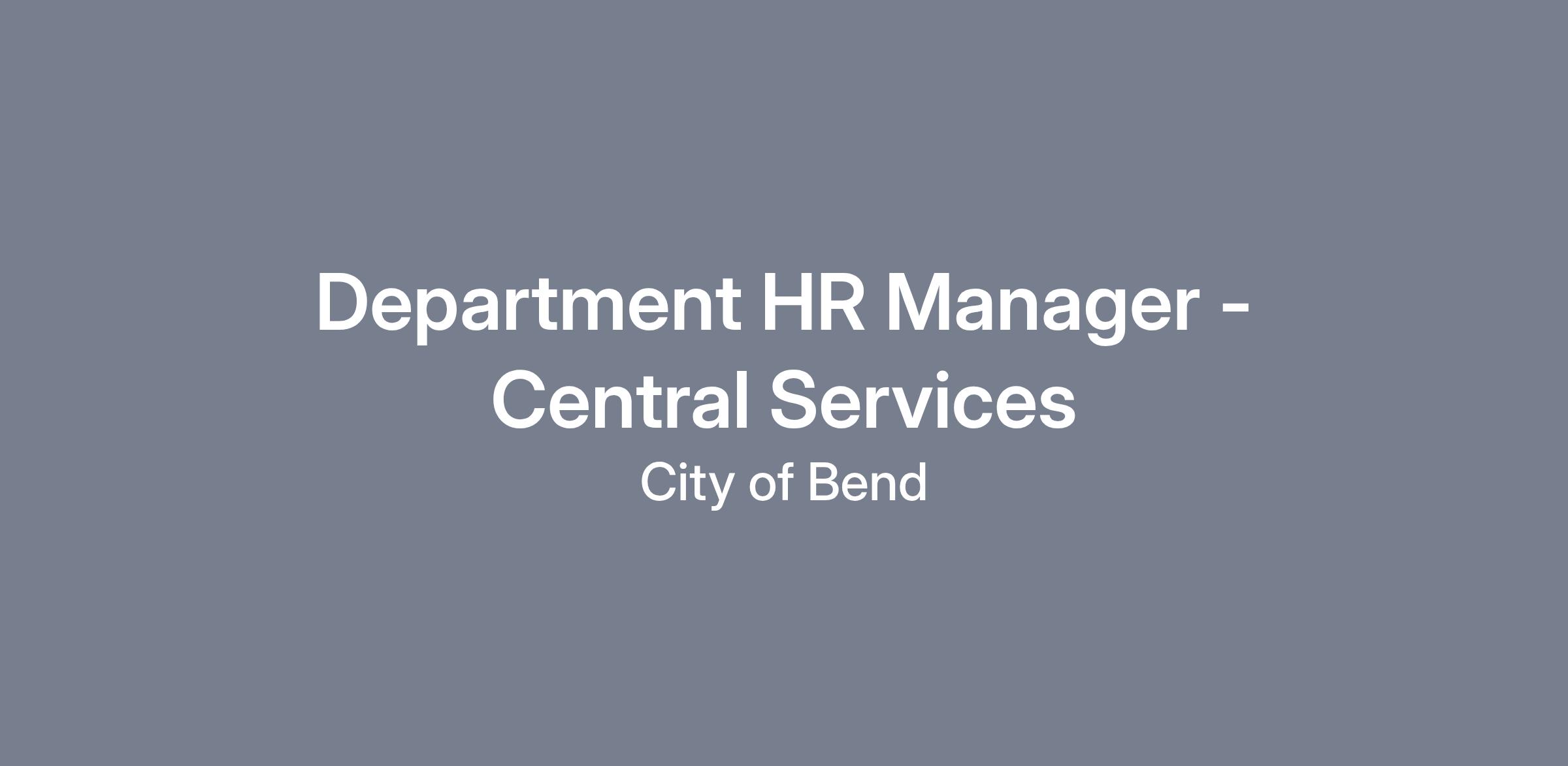 The City of Bend is accepting applications for one (1) regular, full-time Department HR Manager in the City’s Central Services Departments including the City Manager’s Office, Office of Performance Management, Information Technology, Risk and Emergency Management, Communications, Finance, and Legal. This opportunity is non-represented and FLSA exempt (overtime ineligible). The City may use this job posting to create an eligibility list for future hiring purposes. Please review the entire job posting, including the application requirements at the end.