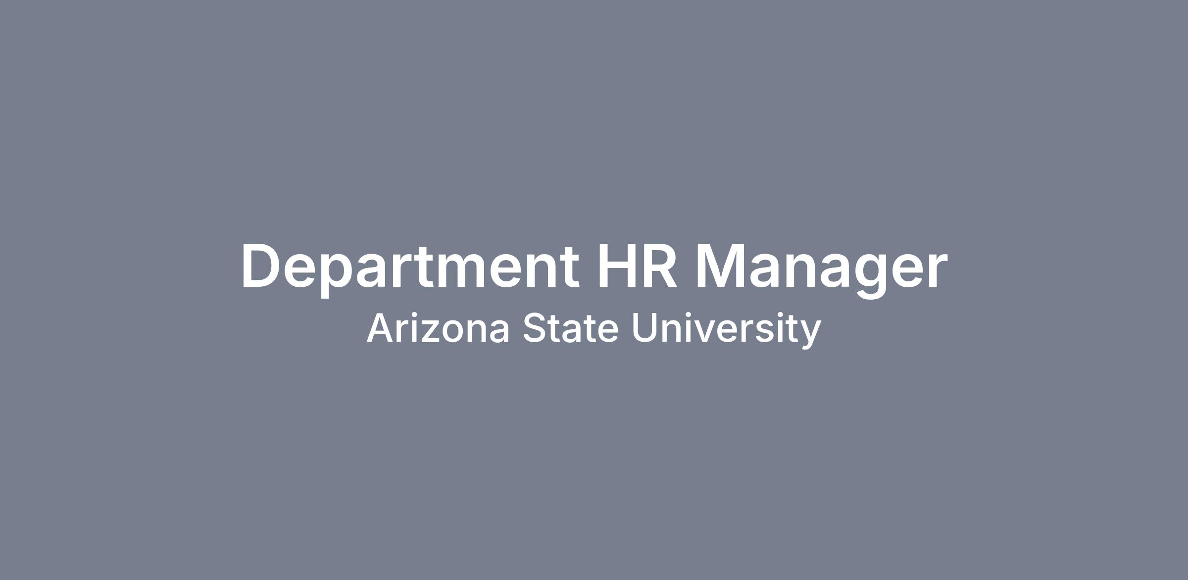 The School of Sustainable Engineering and the Built Environment in the Ira A. Fulton Schools of Engineering is seeking a highly self-motivated and dynamic individual for the position of Department Human Resources Manager to be responsible for strategic leadership, oversight and management of payroll processes, staff compensation and classification, and staff and student recruitment and hiring in a fast paced and complex School.