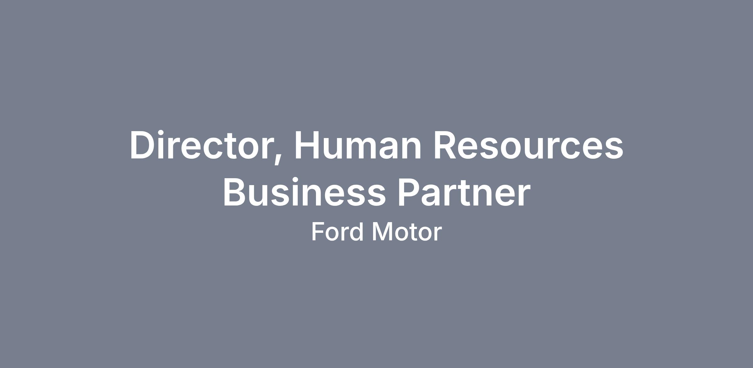 If you are looking for an opportunity to be part of a dynamic Human Resources team, your search ends here! Ford has an exciting opening for a Director, HR Business Partner.