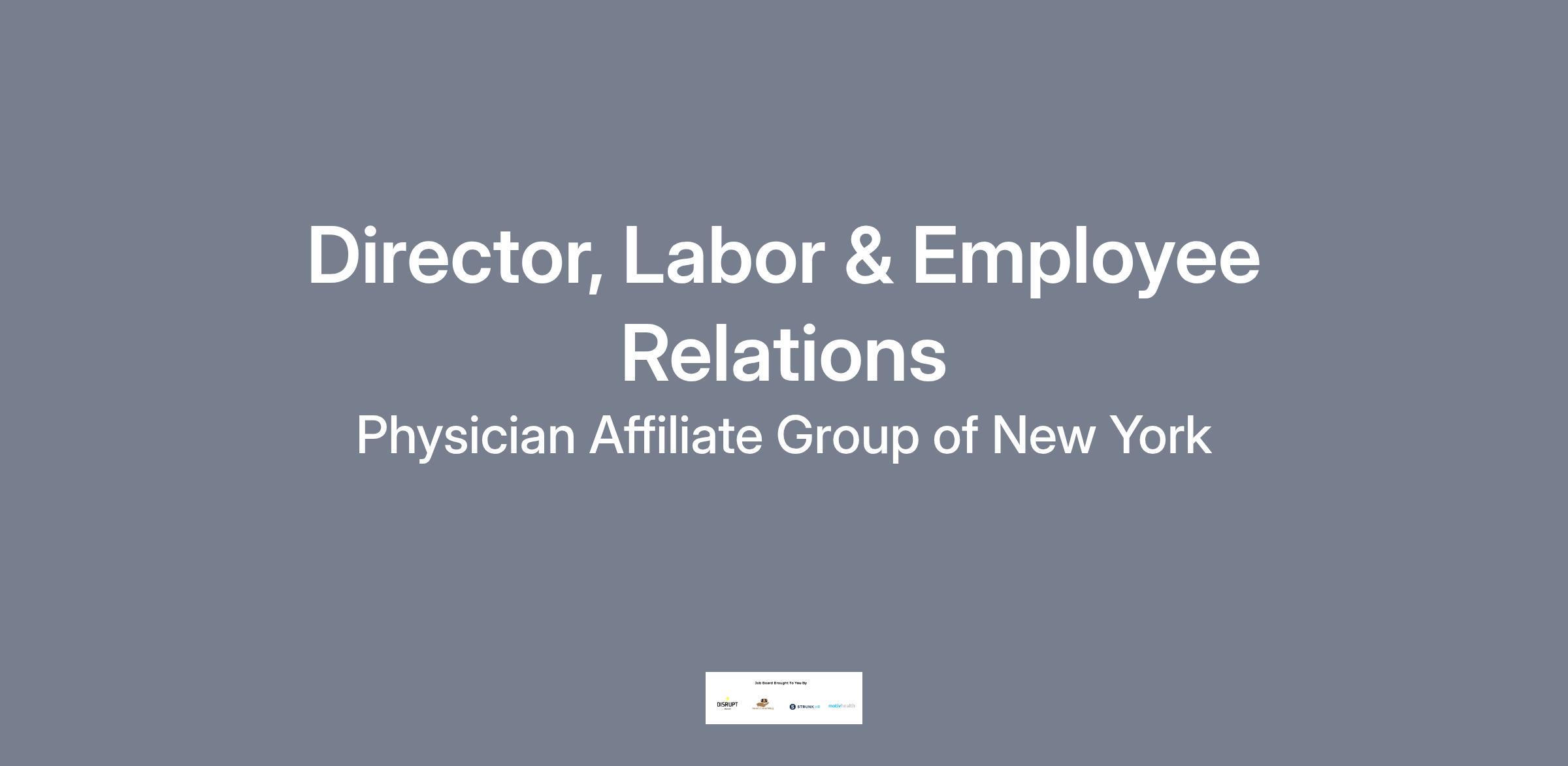 Physician Affiliate Group of New York (PAGNY), a tax-exempt organization affiliated with NYC Health + Hospitals, has an opportunity for a Director, Labor and Employee Relations. PAGNY is one of the largest physician groups in New York State and directly employs nearly 4,000 physicians and allied health professionals who serve seven of New York City’s public hospitals, numerous public health community-based practices, and the city’s Correctional Health Service.