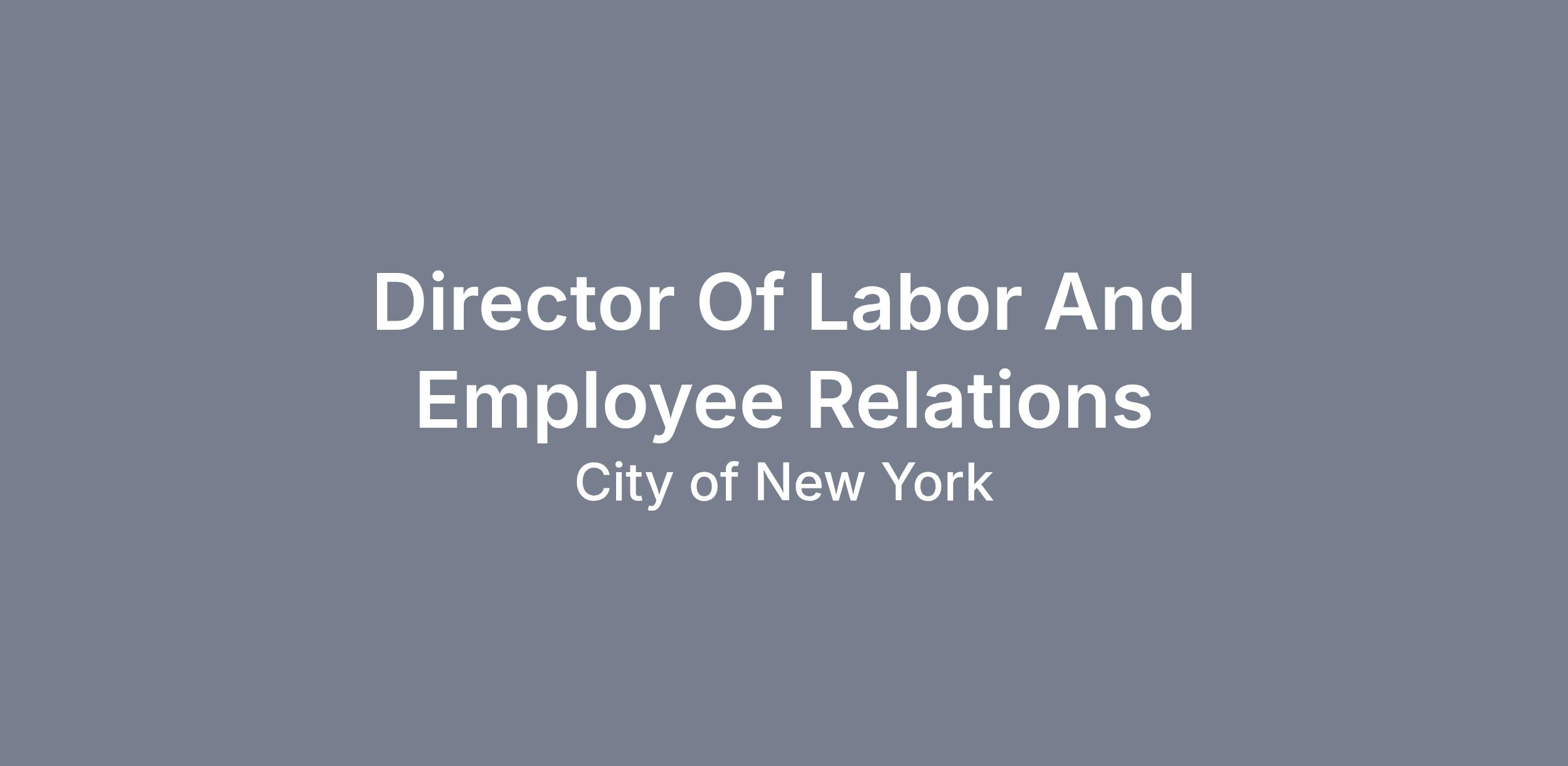 The Office of People Operations delivers HR solutions to the agency as the liaison to external city government oversight for succession planning, payroll management, compliance, labor relations, and policy implementation. The Director of Labor and Employee Relations will report to the Deputy Chief People Officer of Compliance, Payroll & Labor Relations and will be part of a dynamic, service-oriented team responsible for developing and executing human capital strategies and initiatives to support the agency.