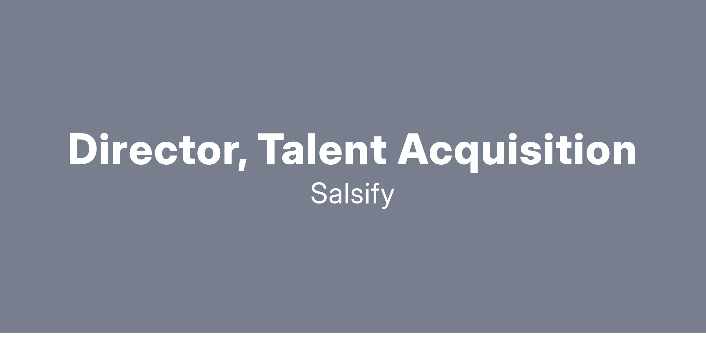 Salsify is seeking a Director of Talent Acquisition who will be a key member of the People Experience (PX) leadership team and report directly to the Chief People Officer. This remote-first position leads our global talent acquisition strategy across the US, EMEA, APAC, and Australia. The Head of Talent Acquisition balances strategic leadership and programs with hands-on executive recruitment, driving our mission to build high-performing teams across all regions.