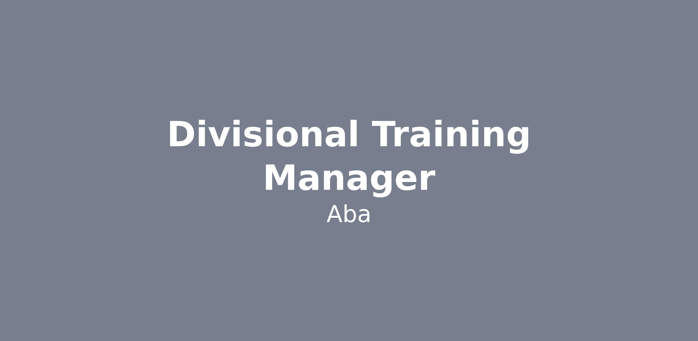 Aba/Ema are now Hiring a DIVISIONAL TRAINING MANAGER