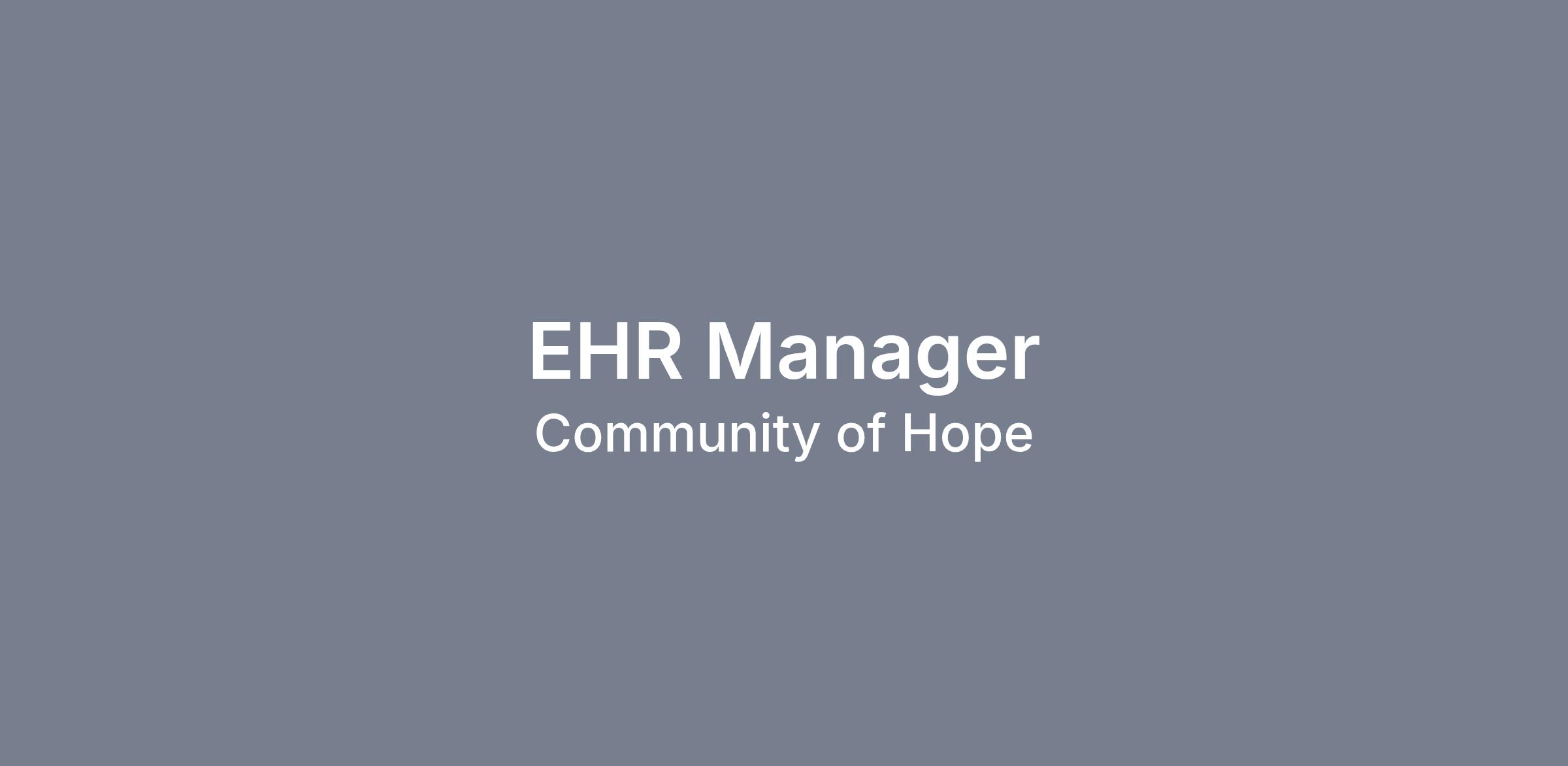 Community of Hope is seeking a EHR Manager to make a lasting impact on how care is delivered at Community of Hope. The EHR Manager provides leadership that ensures our electronic health record is dependable, user-friendly, and designed to support exceptional, patient-centered care. By bridging Operations, IT, and Clinical Services, you’ll translate frontline needs into meaningful system improvements and coordinate training and support that help our teams deliver their best work. This position is a full-time position located at our Conway Health and Resource Center in SW DC.