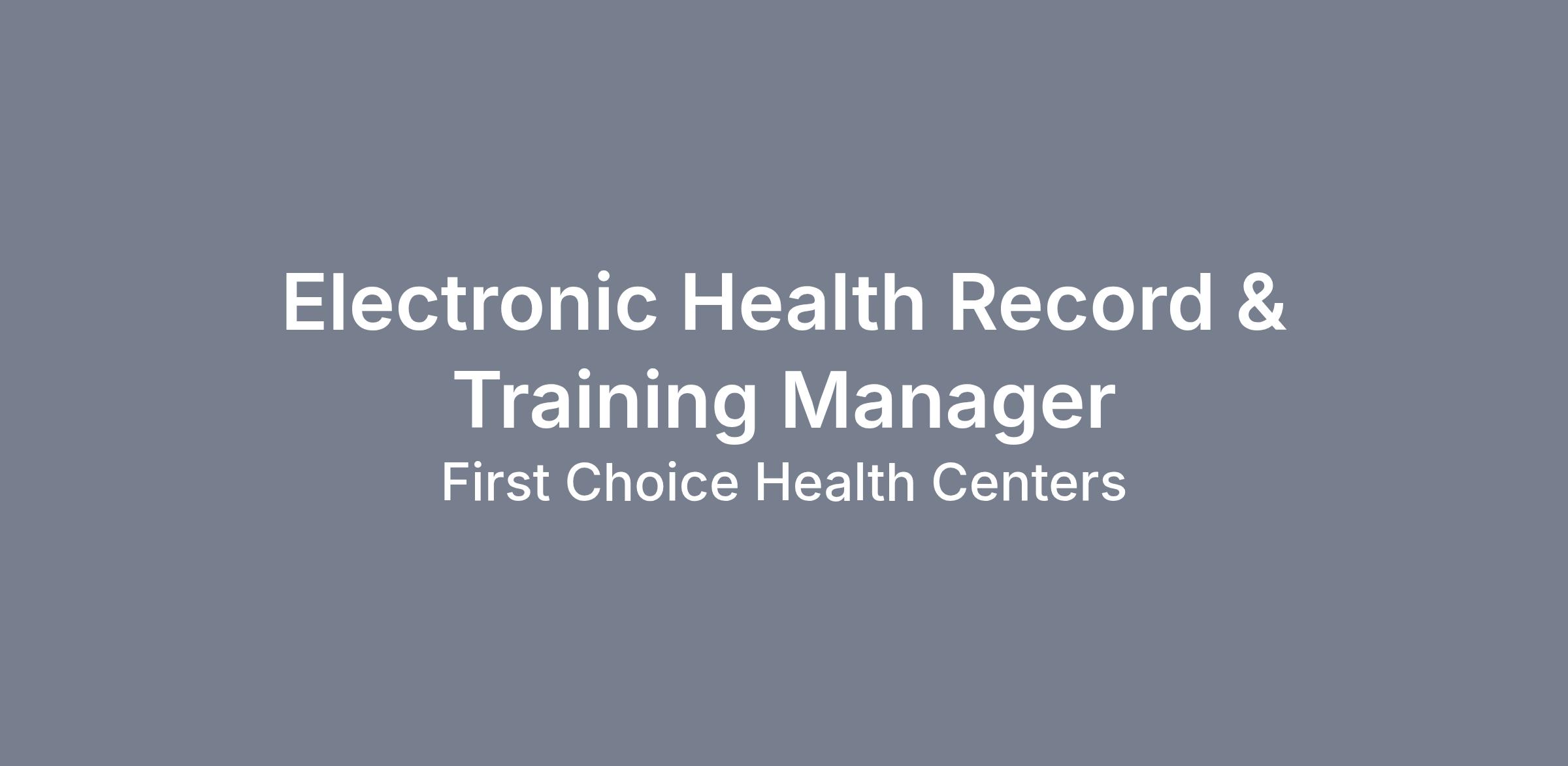 First Choice Health Centers is seeking an experienced Electronic Health Record (EHR) and Training Manager who will be responsible for providing training and support to all employees who utilize the company electronic health record system. This position assesses company-wide EHR developmental needs to drive training initiatives and identifies and arranges suitable training solutions for employees. This position actively searches, creatively designs and implements effective methods to educate and enhance performance.