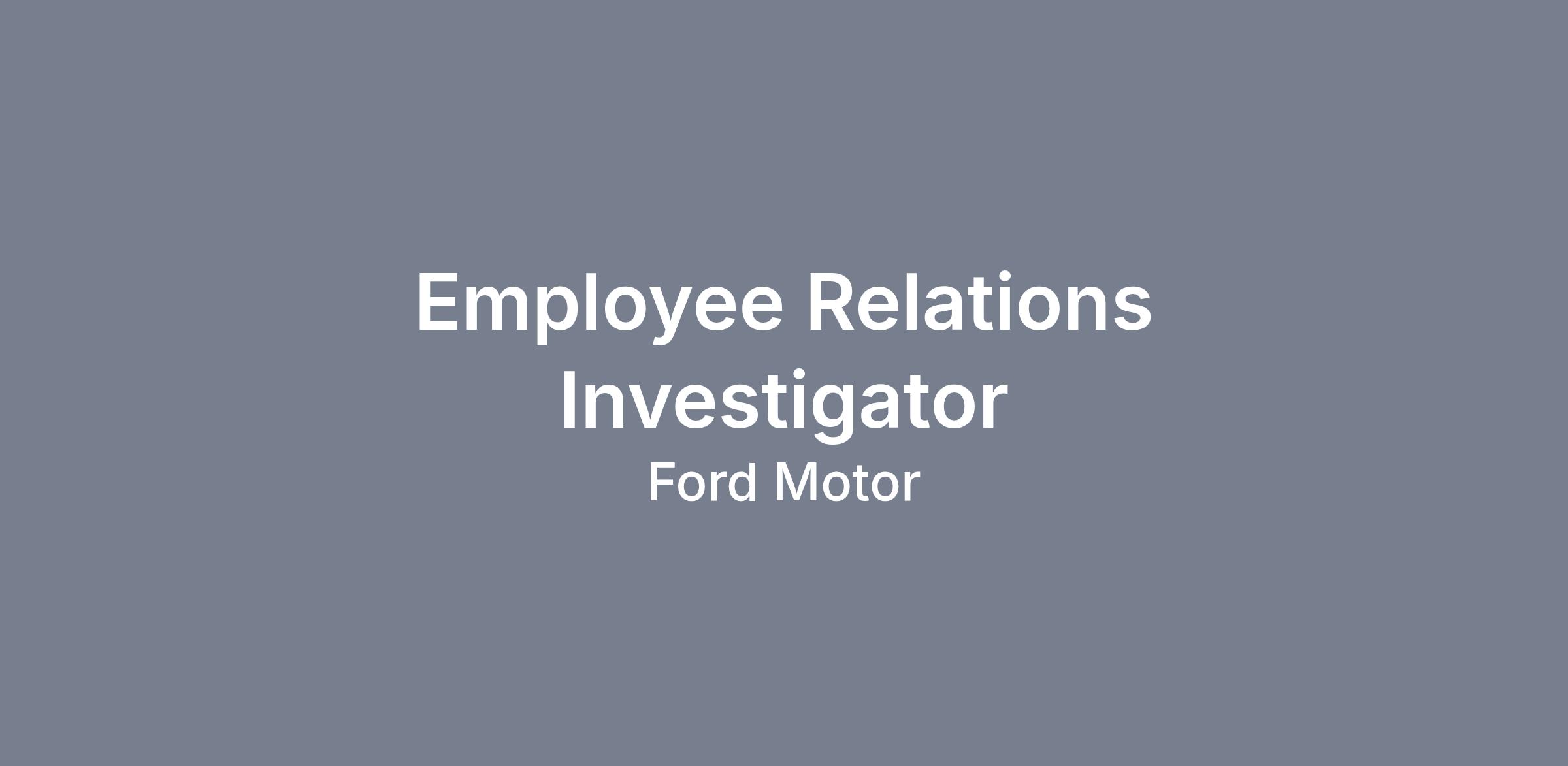 Our team is part of the incredible transformation underway at Ford Motor Company and you’ll have a chance to be a part of that movement. We are seeking an investigator with a passion for employee relations and conducting robust investigations in a dynamic environment who appreciates the important role employee relations professionals play in supporting our values and culture and will carry out duties with the highest integrity.