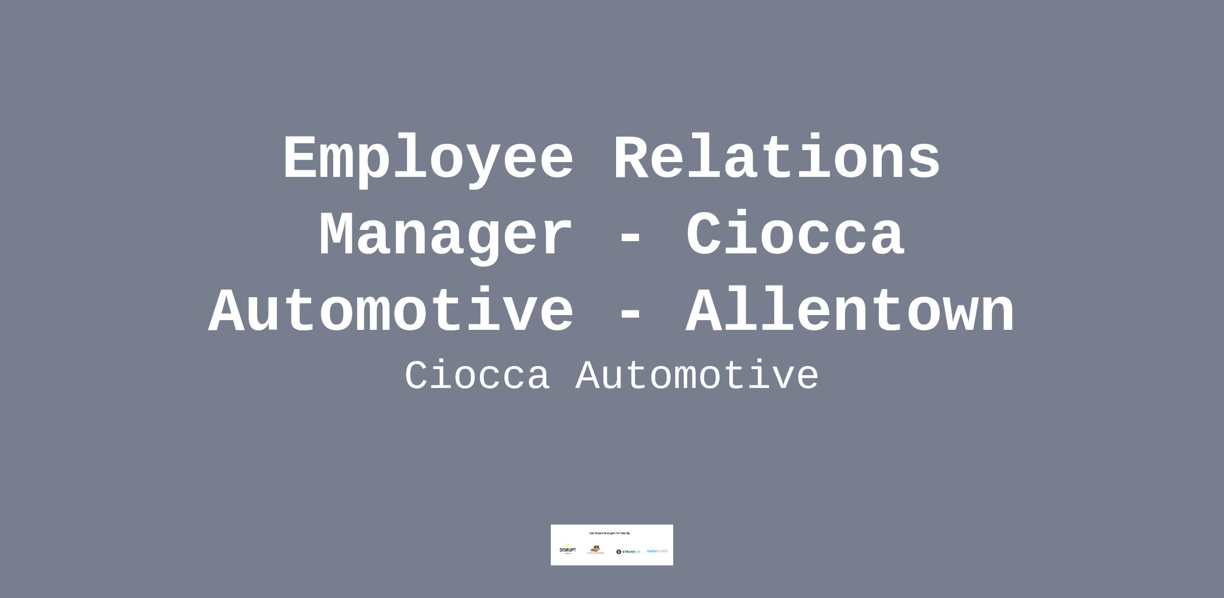 We have immediate an opening for an energetic, enthusiastic and highly motivated Employee Relations Manager to join our growing and dynamic team! Are you a career minded individual in search of a workplace to call home? At Ciocca Automotive, you’ll have the opportunity to have a positive impact on our customers and our community while achieving your financial and career goals!