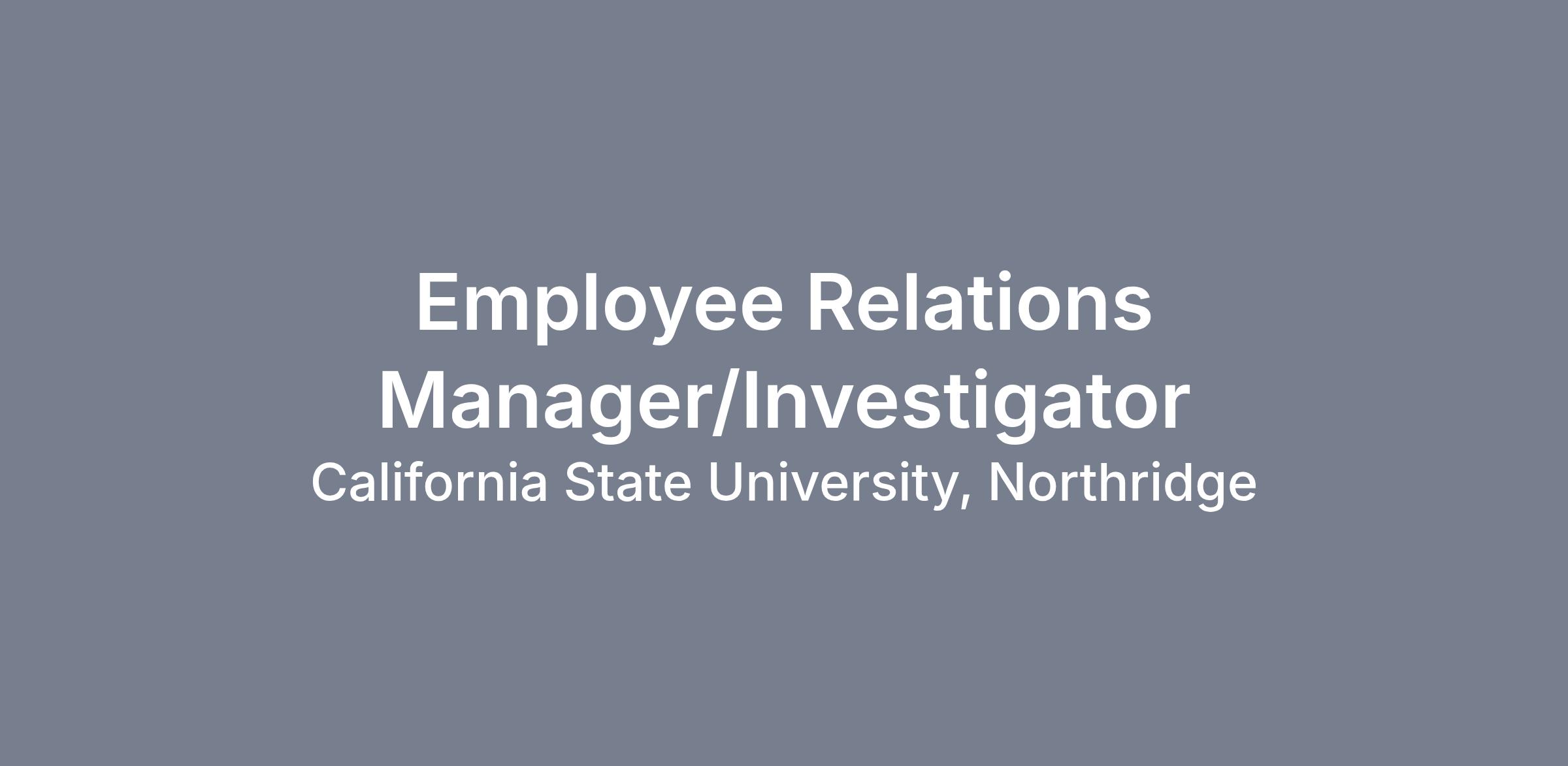 The Employee Relations Manager/Investigator is responsible for providing advanced expertise in the day-to-day functions of the Employee Relations unit. This role supports the university’s commitment to fostering a culture of integrity that emphasizes inclusiveness, empathy, safety, and a sense of belonging in the campus community. The Employee Relations Manager/Investigator independently facilitates impacted party outreach efforts, intake meetings, and informal resolution processes. This role collaborates with students, staff, and faculty to address concerns and initiate conflict resolution efforts in a manner that prioritizes equity, restorative practices, and compliance with all policies. The Employee Relations Manager/Investigator develops and maintains working relationships with campus administrators, providing guidance by meeting with and communicating regularly on employee relations matters, policies and procedures, and Collective Bargaining Agreement interpretation. Independently applies judgment and knowledge of University and CSU policies and procedures, Collective Bargaining Agreements, and state and federal laws to provide solutions and/or resolution to personnel matters. Handles matters of a highly confidential and sensitive nature that includes collective bargaining, litigation, and budget. Provides support on special projects/assignments for the Director and the Associate Vice President for Human Resources, as assigned.
