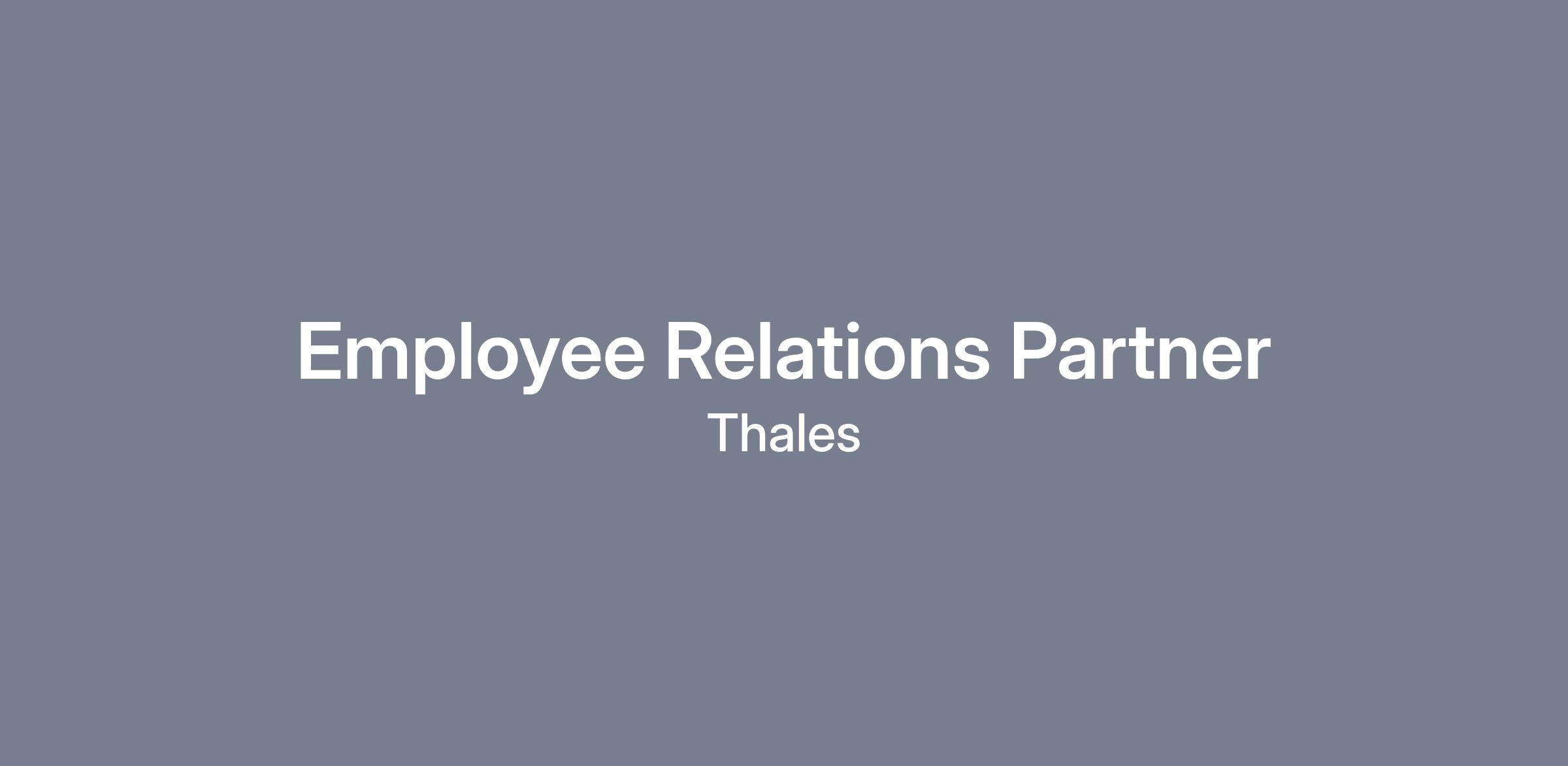 Thales is seeking a skilled Employee Relations Partner to provide outstanding human resources support services to Thales managers, while shaping employee engagement in support of a positive and productive experiences throughout their career.