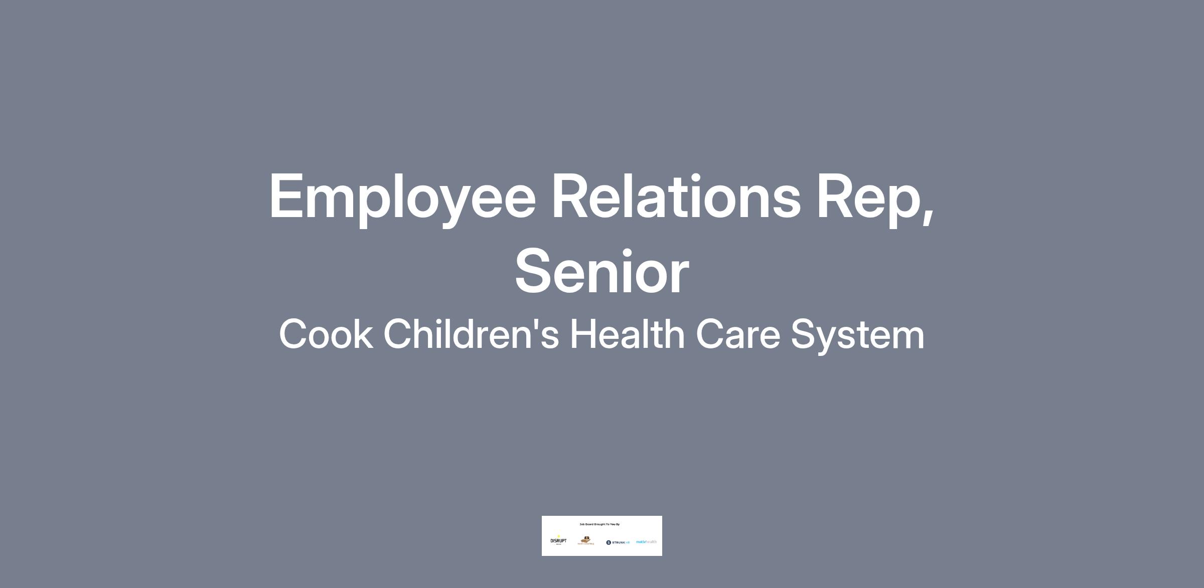 As a Cook Children's Employee Relations Representee, Senior, you will be responsible for assisting the Employee Relations Manager and Director in meeting the employee relations needs of the organization. You will gather information, maintain data and prepare reports for various employee relations projects, i.e. Affirmative Action, JCAHO, Texas Workforce Commission, et cetera. Also, you will work with managers and employees to assist with issues, as they arise.