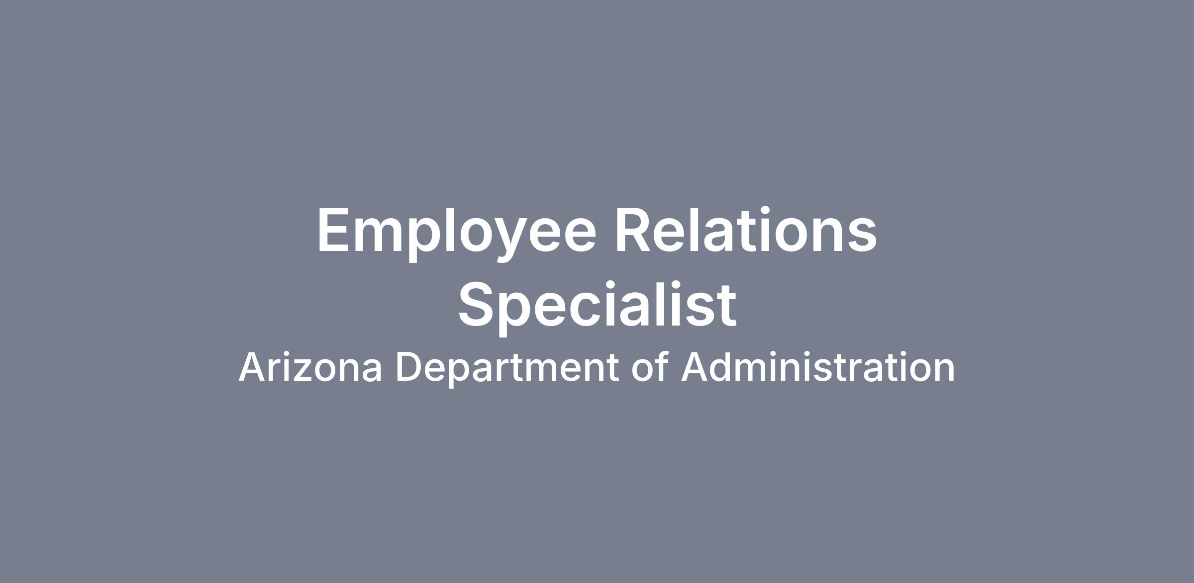 The Department of Economic Security, Division of Child Support Services (DCSS) is seeking an experienced and highly-motivated individual to join our team as an Employee Relations Specialist. This position will research and evaluate complex and sensitive employee relations issues/concerns, full cycle recruitment and personnel actions.